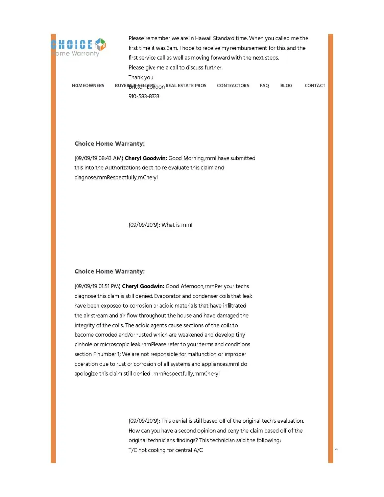 I have contacted Choice many many times about my water heater. I've had two companies to recommend replacement but when I call to ask for the status I'm told that another technician would be sent out, but the majority of the last companies refuse to work with them because of nonpayment. I've never worked with a home warranty company before this one, but after reading these comments I don't think I ever will again. Being on a fixed income, I can't afford to be scammed. At first all seemed well, and I thought I had good rapor with the company but no longer. I'm totally disappointed in Choice at this time, but I don't blame any of the agents who are forced to lie and to stretch out time before sending you a "denial" for replacement of a unit.