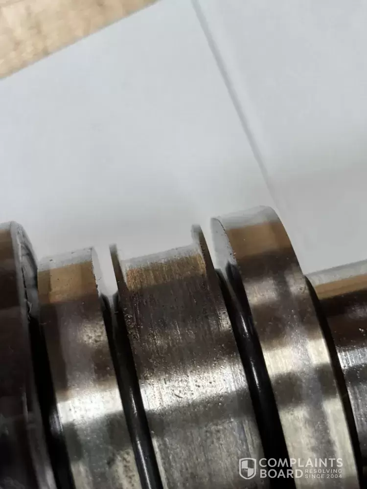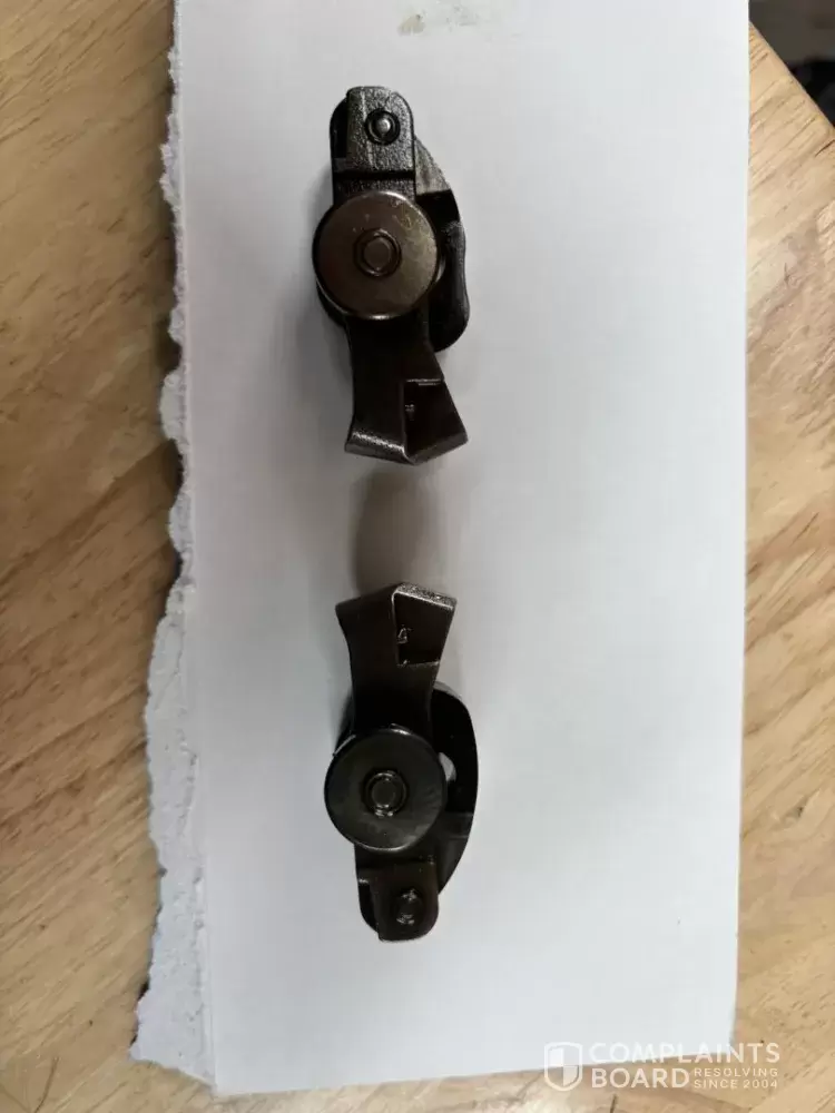 I’m writing about a clear manufacturing defect in my Chrysler Pacifica VIN 2C4RC1DG3HR659767. At 150200 km, the engine started ticking badly—turns out the cam lobes are severely worn (photos attached: one lobe hooked/mushroomed, another starting to score, plus rocker arms with deep backside gouging).