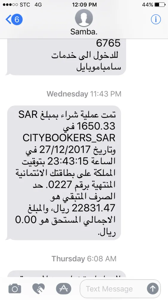 You took the money from my credit card (I received a message from my bank that my card was credited 1650 Saudi Riyal )