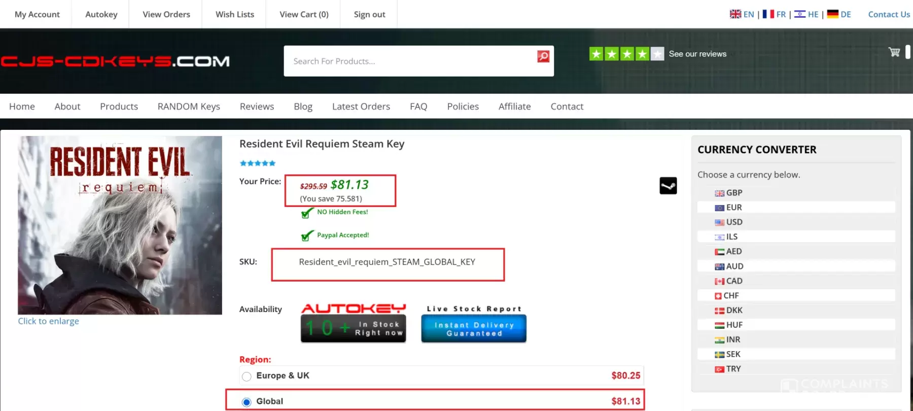 I was looking for a good deal on Resident Evil Requiem for my birthday when I came across this listing for around $85 AUD. The reviews seemed decent, the price wasn’t suspiciously low, and the key was clearly labelled as global. Perfect, I thought — so I bought it through PayPal.