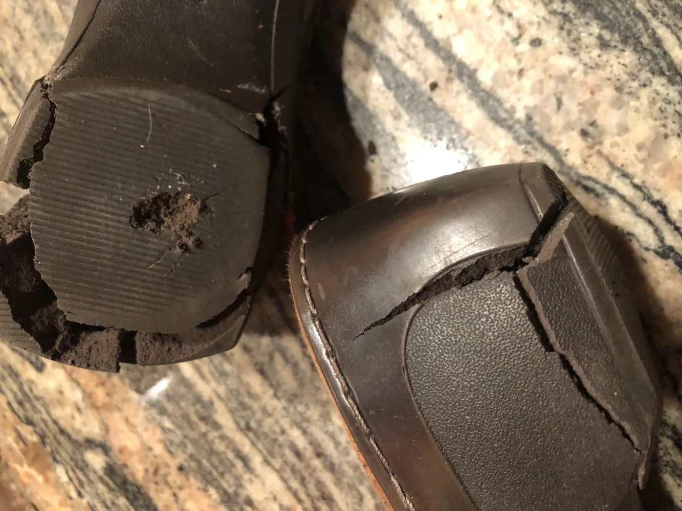 With fall coming got out my favorite Clarks shoes to wear. So embarrassed while in a store the heels on both shoes started to disintegrate. When I came home, got out another pair, they disintegrated immediately.