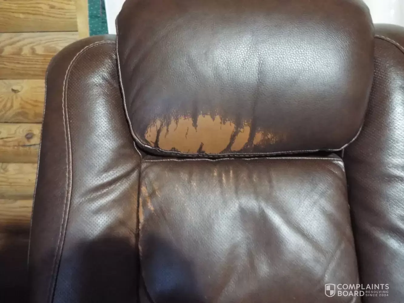One position on sofa is being used, the back of the sofa at that position is losing color. Requested problem to be handled by Coleman, Coleman rep indicated Ashley had been contacted, help with problem denied, indicated issue caused by cleaning with harmful products. Only product touching this area is the shirt on my back. Has never been touched with cleaning products. Is either not a true Ashley product, or possibly a prior returned item, resold to me. Delivery made without any boxes.