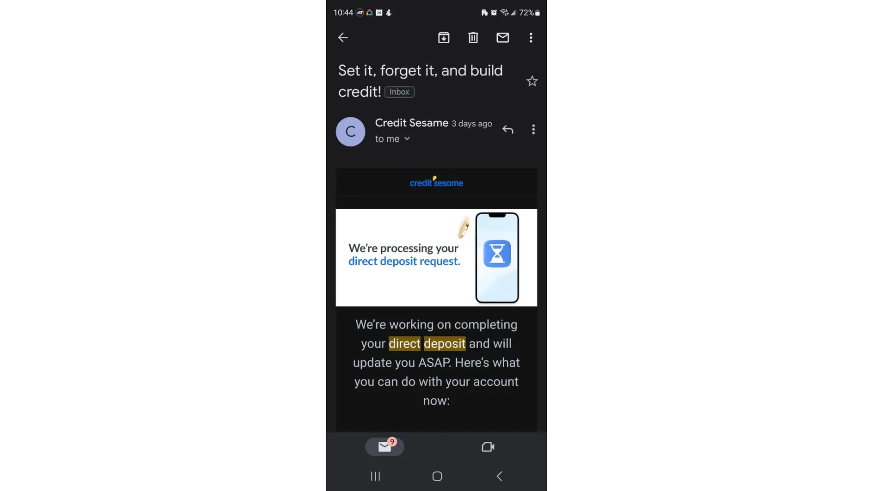 I set up direct deposit with Credit sesame on May 17th, received a confirmation email that they were working on it. I NEVER RECEIVED A CARD, OR MY PAYCHECK! My money says it was deposited into an account, I have no knowledge or access to!