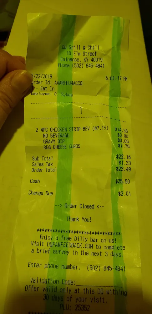 JULY/29, 2019 @ 5.41PM -DAIRY QUEEN STORE# - 27127.
