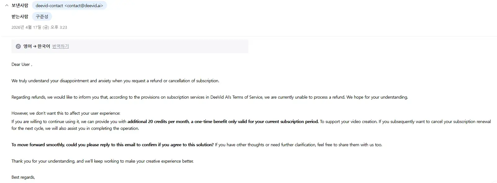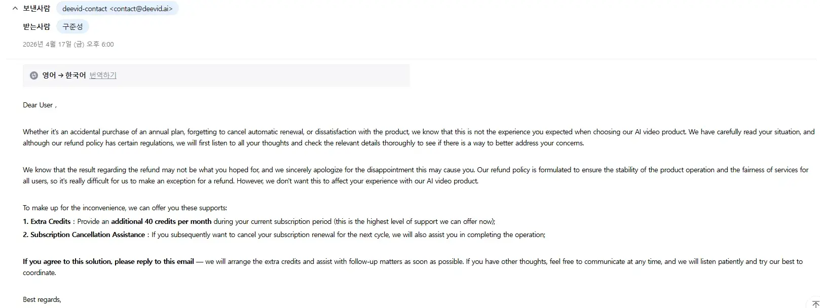 I subscribed to DeeVid AI expecting a monthly plan, but I was charged for an annual subscription instead.