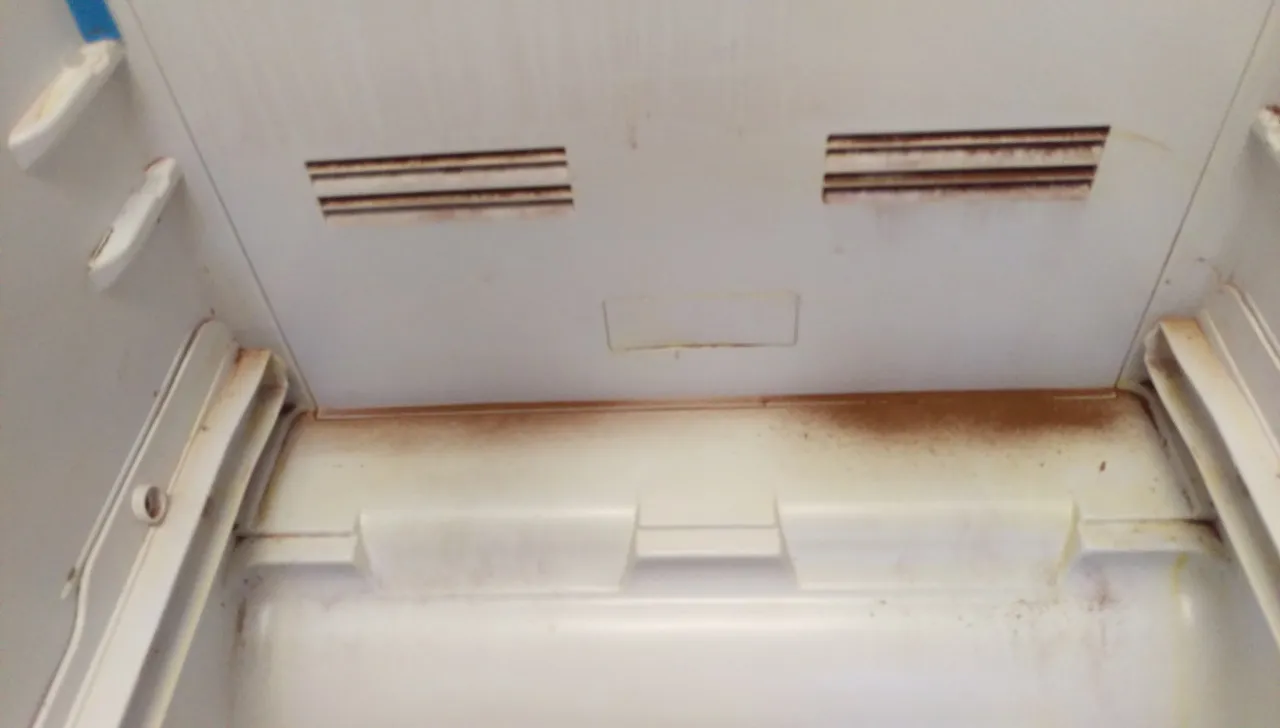 On request, I had to have the fridge taken apart to get to the origin of the rusty dust issue and what a horrendous surprise - the images speak for itself. Unfortunately insurance companies do not cover rust issues.
