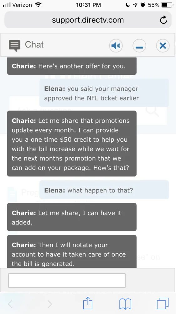 Started a chat with Direct To inquire why my bill had increased by $58 dollars. After 2 hrs of chatting & being transferred to two different worker plus one supervisor, I still did not get an answer as to the bill increase. When I asked to cancel they offered a one time $50 dollar credit to my account for me to stay, but notified me I'd still be paying $108 for what was supposed to be a $60 per month plan. I asked that they apply the $58 credit & cancel my account after being with them for over 15 years & they cancelled my account with no hesitation or offers & cheated me on the $50 dollar credit they had offered me. I got ripped off on my bill, plus cancelled on my service. Worst customer service ever!