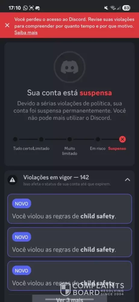 Just like everyone else, I had my account disabled for no apparent reason. Without any word and without any cause. At the time it happened I was just in a call with some friends talking about Dungeons&Dragons and suddenly, I get logged out. I try to log back in and I am disabled.They did not send me any notification about it until I emailed them and all I get is the same cookie cutter response of "I violated the terms of service and community standards, my account will not be reinstated" but it does not tell me why. I know I didn't do anything. And judging by the reviews here I am CERTAIN I didn't do anything. All I want is my account back. I have so much on that account that I cannot get back. I do not understand how they have a 1 star rating and yet somehow it is ok for them to treat customers this way. And YOU guys let them. You are the Complaintsboard.com...aren't you supposed to fix bad practices like this?