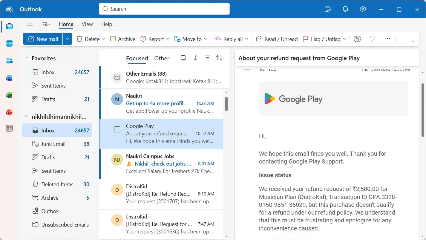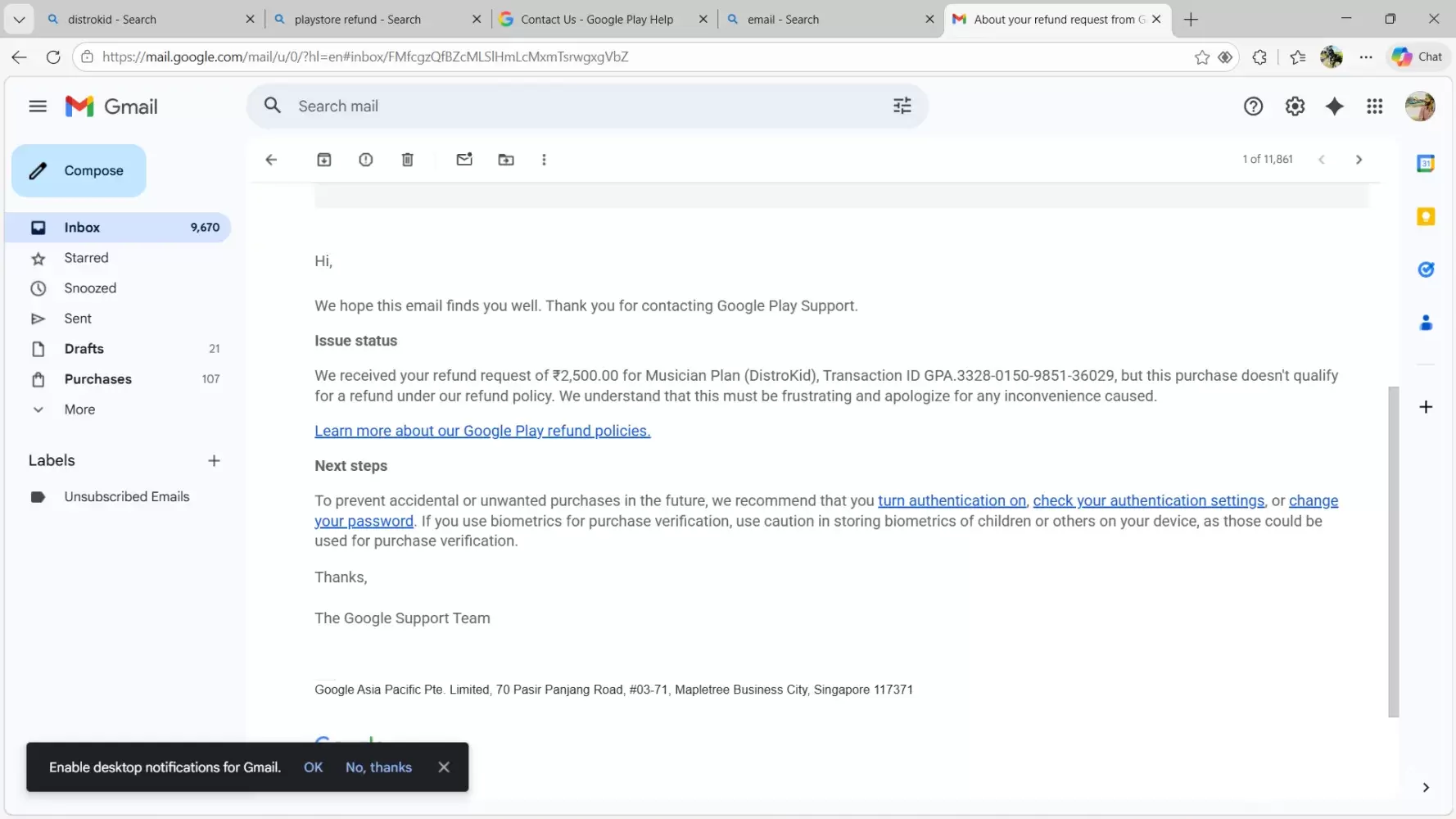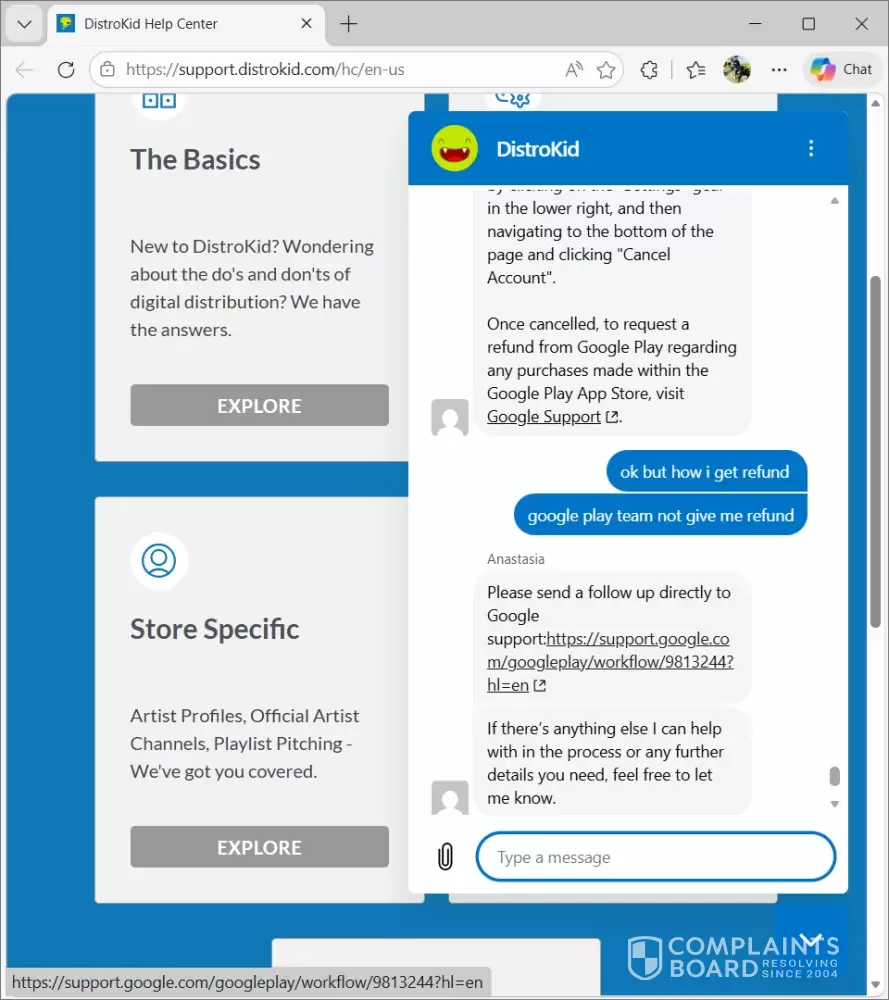 The agents told me to cancel the previous Musician subscription in Google Play and request a refund there, which I did. Google Play denied the refund request, saying it’s against their policy and that DistroKid should handle it.