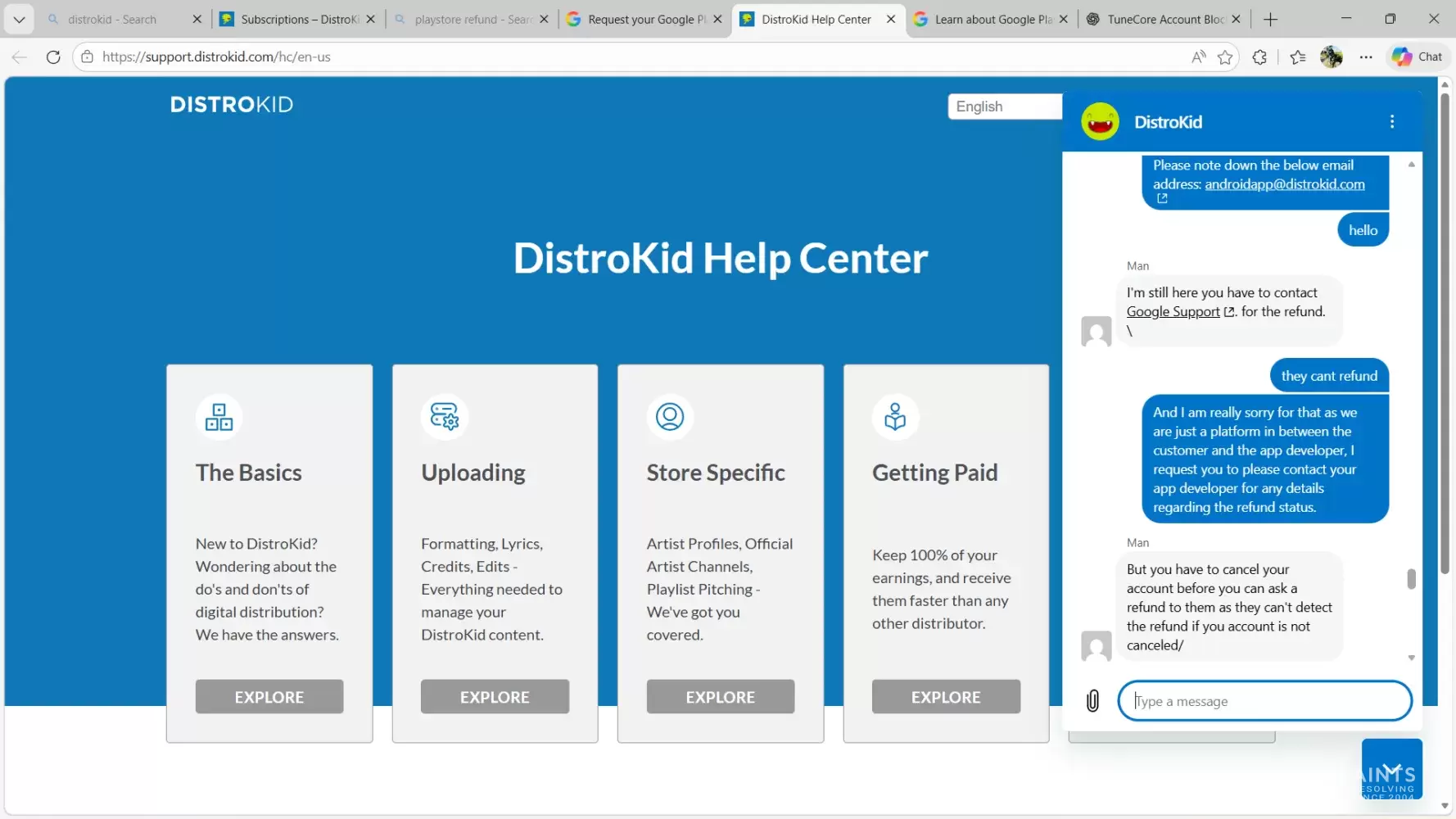 Later agents told me to cancel my DistroKid account entirely for a refund, which I also did mistakenly.