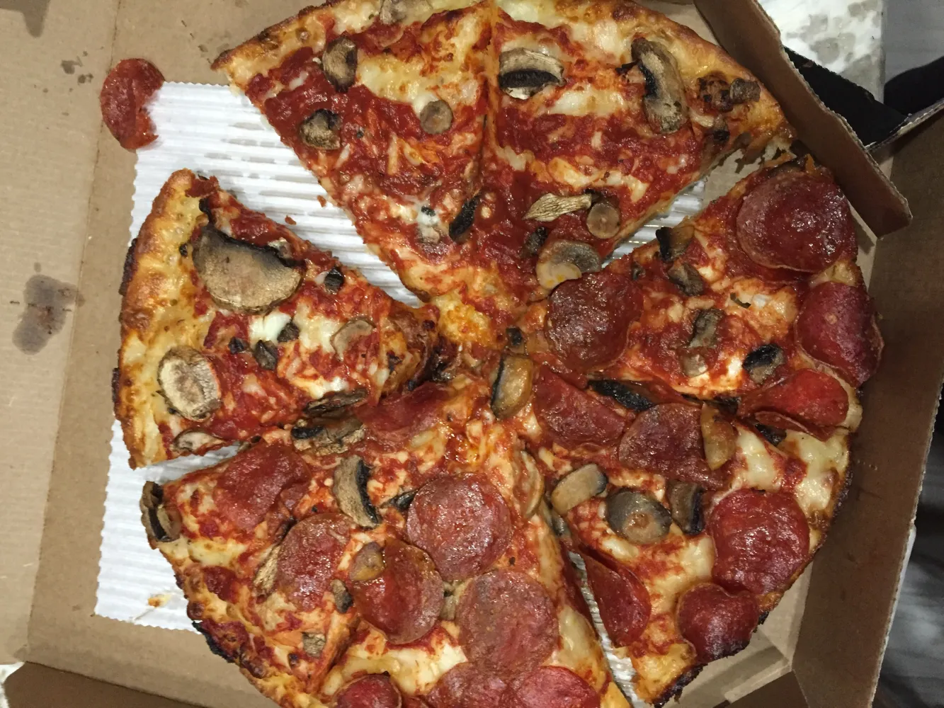 This was my free pizza after placing six previous orders in the last month. The driver said he could throw the order out so I wouldn't be charged. That would be great if I had paid for the pizza. But I used my points. The points I earned from six other large orders. I want my points back, and some kind of effort to make up for the the last two orders, not a free, free pizza! I sincerely hope someone reaches out to me to make this right, or last night's order will be my last order.