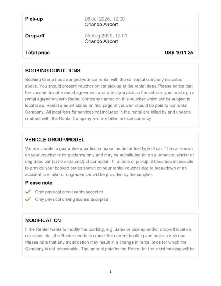 All very misleading. You can’t hide behind fine print or vague comments. The booking confirmed theat no insurance was taken and at my risk, then I am forced to take some arbitrary insurance from a small list of companies or forced to sign up for their exorbitant rates. The out of state was on the voucher received long after the booking. Very misleading. What do you have to say about association with a company with thousands of negative reviews? Clearly you believe you are just washing your hands of any responsibility by adding fine print. Horrible way to treat a customer. Does your company have any standards for who you send your customers? You must of been aware of these predatory practices. My initial conversation with the Florida Attorney General’s office makes me feel they agree with me. I look forward to hearing your response.