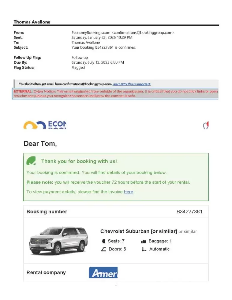 This is the biggest scam ever. I booked what I thought was a great deal for a month rental in January for a July 25 rental. They sent me to America Car Rental (though it seems they also use the name Sonic Car Rental) to pick up my "Suburban or similar", (which turned out to be a Kia, which was the 1st warning sign of future issues coming). When I went to pick up the car, I was forced to purchase "All Insurance" which cost another $1,600. This was after I told them insurance was covered by my platinum AMEX card. They said that was not good. I then told them that I had personal insurance with Chubb which provided coverage far better than they asked for. They then said it had to be with one of 5 companies they listed, all of which are rated lower than Chubb. I had no choice but to pay their extortion as I needed to get the car. I never received a rental agreement but did sign an IPAD which they said acknowledged me picking up the car. When I returned the car they said the car was driven out of state, which I did not dispute. They showed me a rental agreement (which I had never seen before, complete with my electronic signature, presumably prepared from the "acknowledgement" on the IPAD) which indicated it would cost me $500 + $.30 per mile plus an administration fee of $250, all together, they charged an additional $2,400 and I forfeited a $1,000 deposit. I did not receive any information for Economy Bookings until the day before I picked up the car. If I had known of all these restrictions, I would have cancelled everything. I am now out $4 thousand dollars plus the cost of the actual rental. THIS IS A BIG SCAM. I am notifying the state attorney general, the Better Business Bureau, and will be writing similar reviews on all online outlets, including Trust Pilot, YELP, Google, Trip Advisor, Yext, ETC.