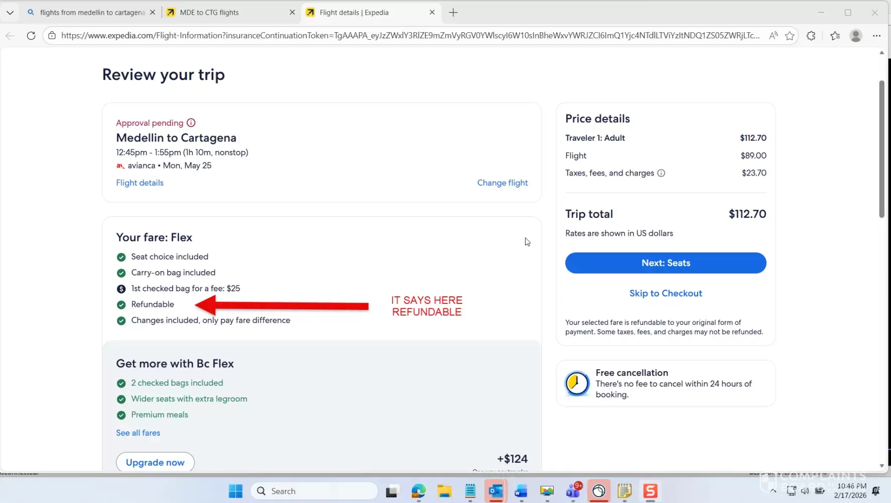Booked and paid extra for a refundable flight. It was an South American airlines.