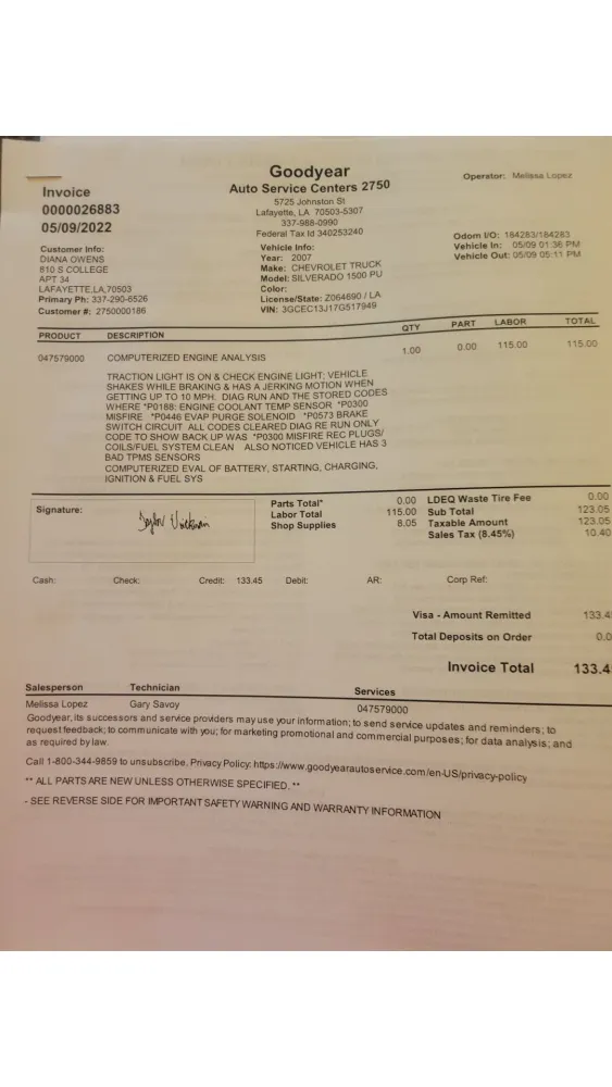 I took my vehicle to the Express Oil Change on Johnston St. Lafayette, LA on May 2nd, 2022 at 11:30 am to get it looked at and fix the problem. My traction light/stabilitrak was on and my service engine light. My vehicle is also vibrating back when idling and once i get to 10mph while driving it does a really hard jerk. They told me my truck need a tune up that all 8 spark plugs/sparkplug wires and 2 coil packs needed to be replaced. I told them go ahead and do it. It took them over 5 hours to get it done. To only get told that the codes are still popping up and it must be an electrical issue. The next day I had a certified mechanic come look at it to tell me that the coil packs were the wrong ones and the sparkplugs and wires weren't changed. So I took it back the Wednesday for them to tell me the same thing that it was an electrical issue. I had the certified mechanic come look at it again and he changed a couple things that still didn't change anything and told me it still needs a tuneup because you have a bad misfiring. I then took it to a car dealership to have them tell me that it needs a tuneup. Then on Monday, I took it to a Goodyear mechanic shop that ran an hour diagnostics and told me it's saying I need a tuneup. On Monday, May 9th, 2022 I called the Express Oil Change on Johnston St at approximately 3:30 pm and asked to speak to the manager but was given the guy who first worked on my vehicle and as I explained him what all these places and mechanics were telling me, he gets ugly with me by saying I can show you the camera and the tuneup was done right, it's an electrical issue. I told him it's not an electrical issue cause none of those codes are popping up in the diagnostic test that's being ran. Then he says well the manager Mr. ------ will be back in the morning.