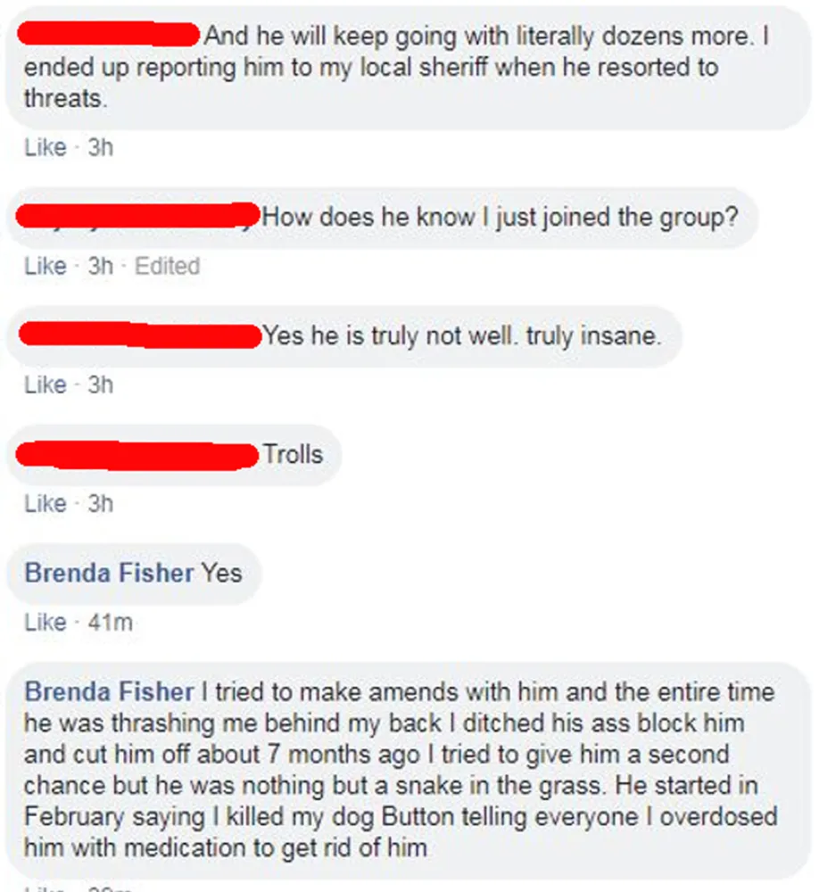 An example of what he's posted on his facebook page about my deceased father. He's also contacted my estranged sister under the name "Michael Justice" - and injected his own words into that conversation. She does not hate me, any more than I hate her. But we definitely do NOT agree on many things and never did. Regardless - the relationship between us is none of his damn business and for him to assume he understands 65 years of my families dynamic is just more twisted and dilusional thought to provoke a reaction from me, and nothing more. And this is as much of a reaction he's gonna get. Make no mistake - what I've posted here is only the tip of the iceberg. There is much more - and thousands of victims. The list grows daily. If you are contacted by someone like this, report their acct. to facebook, do not attempt to reason with him (or her as he likes to do), and block him. Don't make yourself his next target.