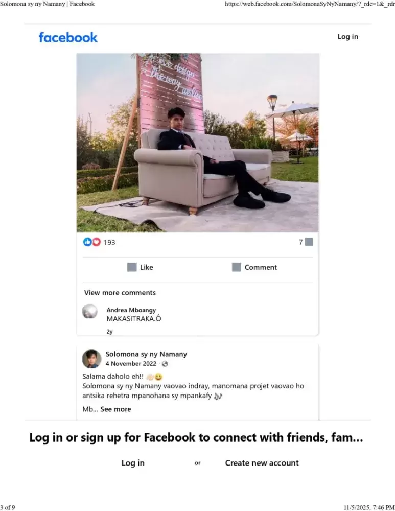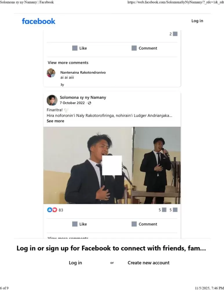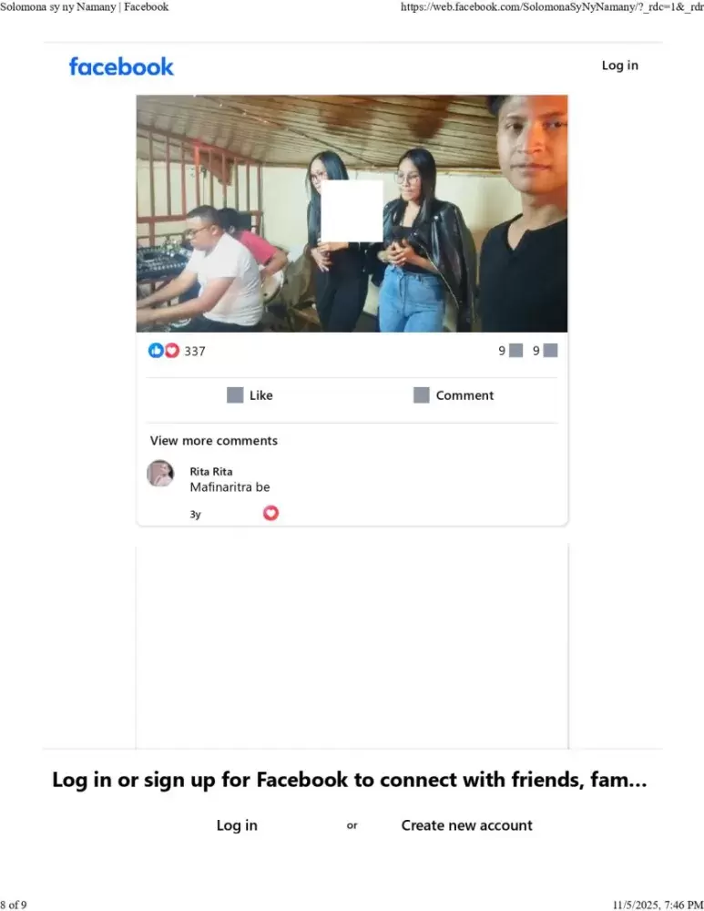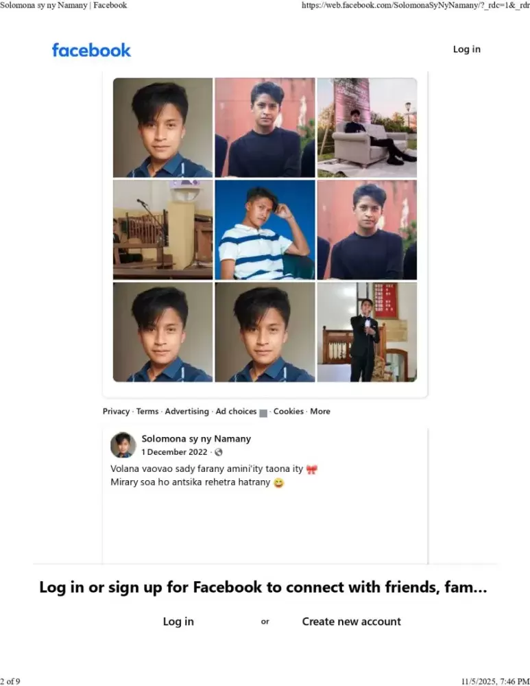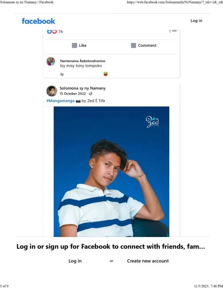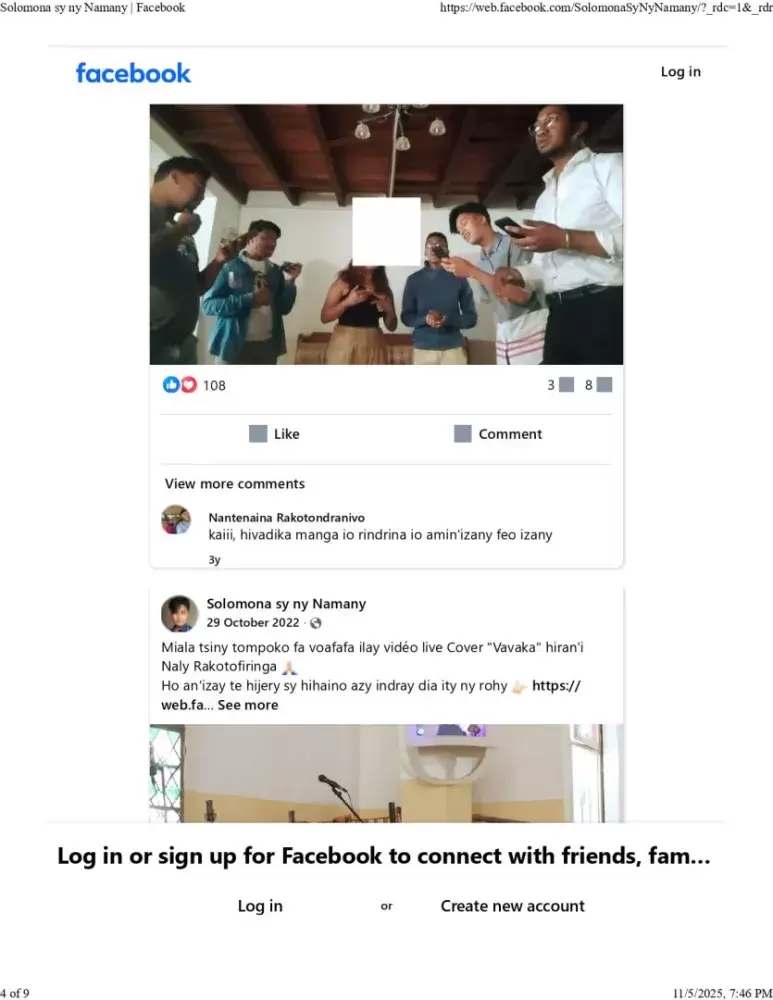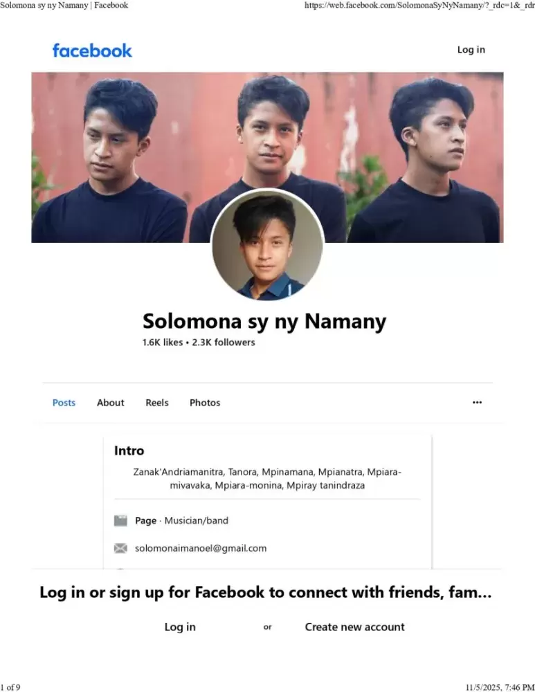 Claimed loss: Lost my 2014 Facebook account with all posts, videos, and my page “Solomona sy ny namany.” My 2020 cover had 27k views, 3k reactions, 1k shares — all gone, along with opportunities and audience.