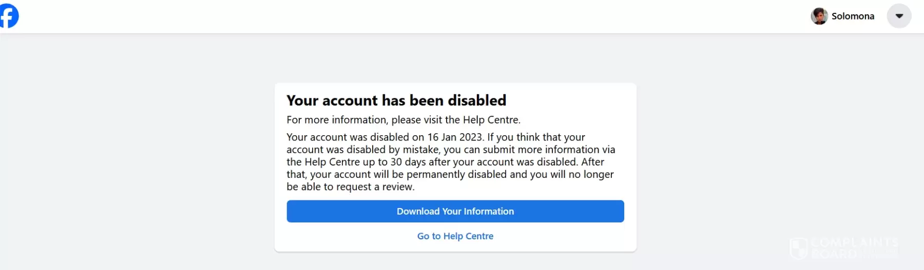 Shortly after, Facebook asked me to send my ID for verification, which I did immediately. But 24 hours later, I received a message saying that my account was permanently disabled, and that the only thing I could do was download my information.
