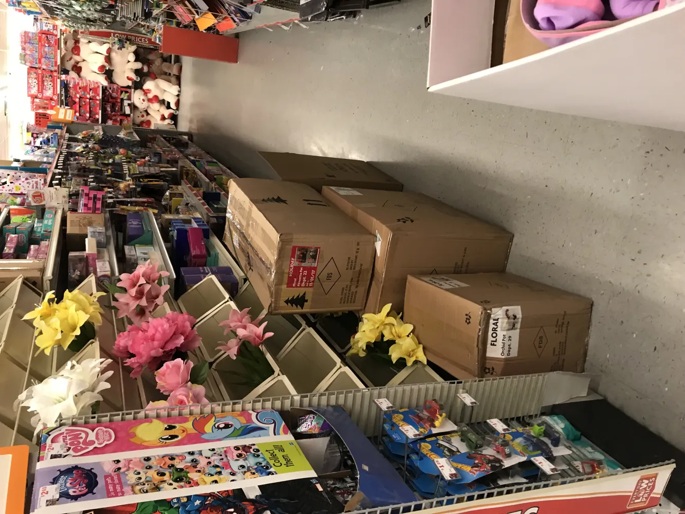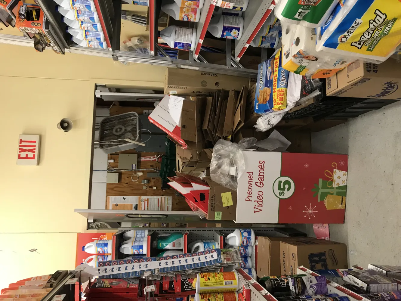 store is dirty inside & out clutter with merchandise in isles