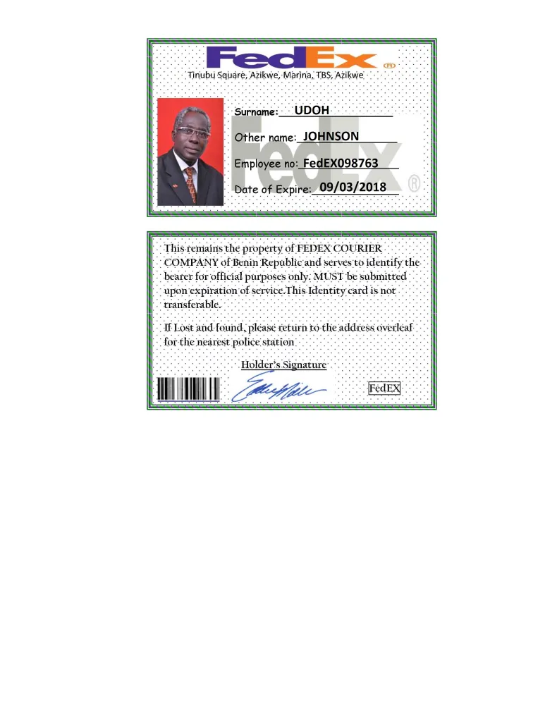 To whom it may concern; My name is Mike Abeyta I have been corresponding with Mr. Johnson Udoh from FedEx. Employee number - FedEx098763. I sent Mr. Udoh a fee payment for delivery of an ATM card. His office representative picked up the payment and now Mr. Johnson refuses to send the ATM card. His reason for not sending the card is Mr.Udoh said that Michael his representative was shot by robbers and stole the money. He claims that he never received the money and wants me to resend the fee. I responded to him with proof that Michael did pick up the money and that I did pay the fee. Mr. Udoh also agreed to pay the fee if I did not receive the ATM card and if for any other reason the transaction did not go through he would pay me back. Mr. Udoh has refused to keep our agreement. I want to press charges against Mr. Udoh for fraud. I can forward the emails proving Mr. Udoh guilt. Thank you for your time, Mike Abeyta [protected]@yahoo.com