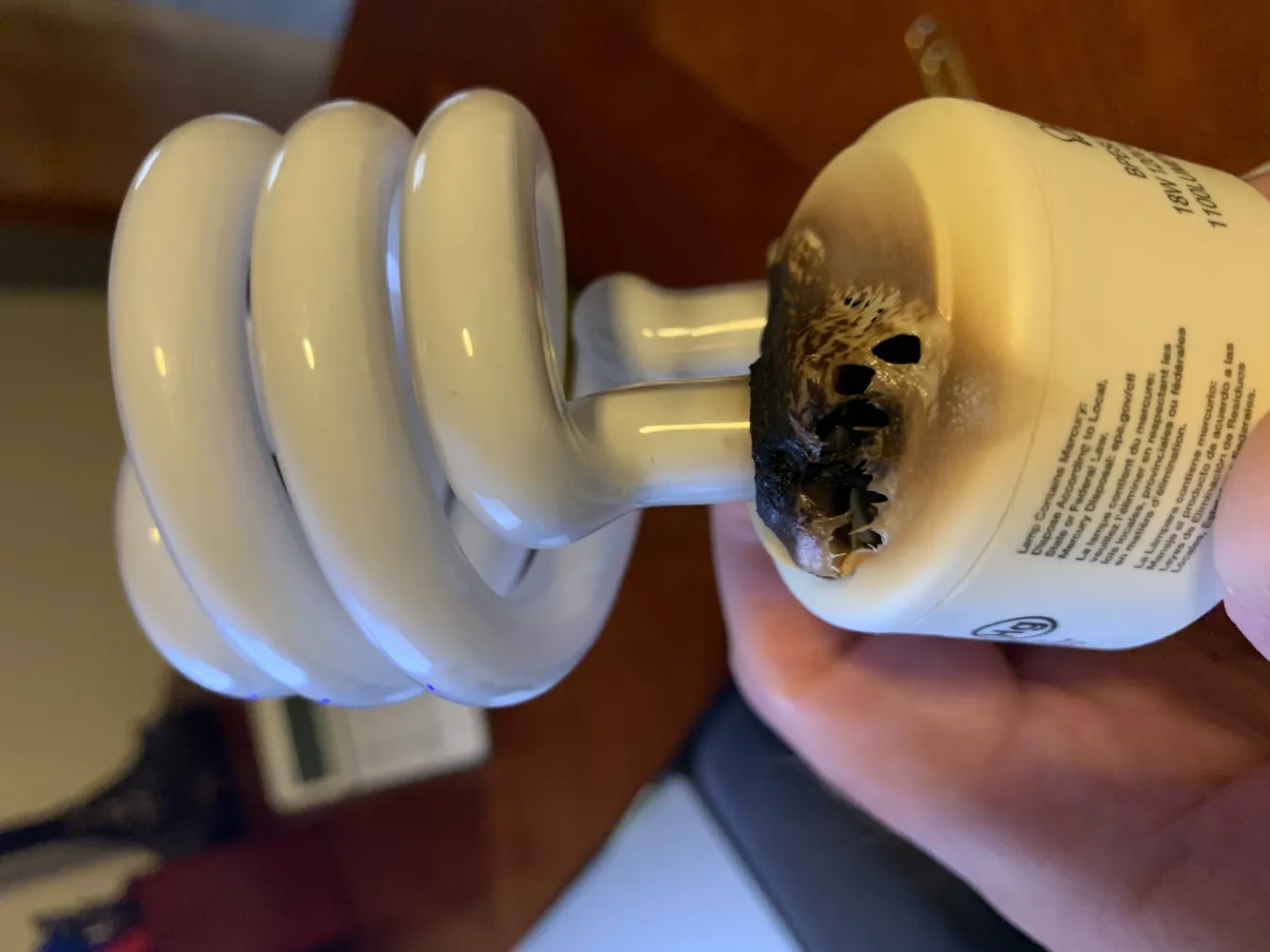 Last month: my wife reported a pop sound and an acrid burning smell which we could not locate. We knew something plastic had melted, but looked for 30 minutes before finally finding the still mouldering remains of... you guessed it... another Feit bulb in an overhead track lamp. There are black streaks coming out of the bulb base, and the entire house stinks. This was a Feit 13 watt bulb that came with our rental. The bulb was properly installed, and in no way enclosed by the track lamp.