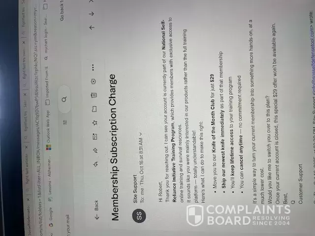 I ordered a knife from the Fight Fast and it arrived and was of good quality. The issue is with their linkage with SOSDefenceTools, which is a scam. They opt you in automatically to a subscription service, with no notification or notice. They begin charging the cc that you provided Fight Fast, to the tune of $57/month. If you do not catch this on your cc startements right away, it can add up to hundreds of dollars, of which they will only refund the last month of charge. I unfortunately fell for this twice now due to my extensive travel and other distractions that did not allow me to catch this quickly. TrustPilot has quite a few complaints on this scam on their site. In my most recent experience with them they sent me an email response showing me the programs and value that I was sub suscribed to, with another program option. This is a new attempt to look legit. Iyou go to their website (www.sosdefencetools.com, it is a mere shell of a website with minor other company advertising on it. I am pursuing legal and governmental agency action on this situation, as well as my cc fraud department.