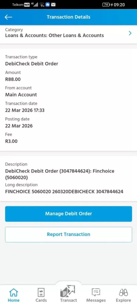 would you explain why did the debit order went off on the 14th this is not part of our agreement am only getting paid month end