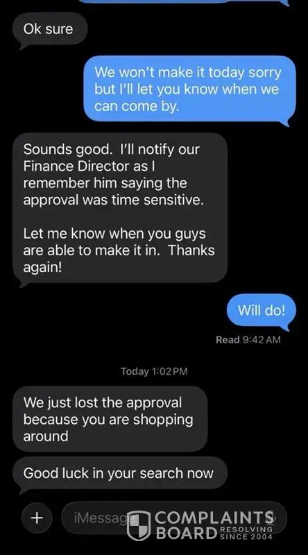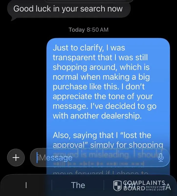 During the process, I worked with your sales associate Ajay Verma. Unfortunately, I found parts of the interaction to be uncomfortable and, at times, misleading. After choosing to explore other options - as many customers reasonably do when making a significant purchase, I received a text message from him stating that I had "lost approval" because I was "shopping around" and wishing me "good luck" in a way that came across pretty brutal.
