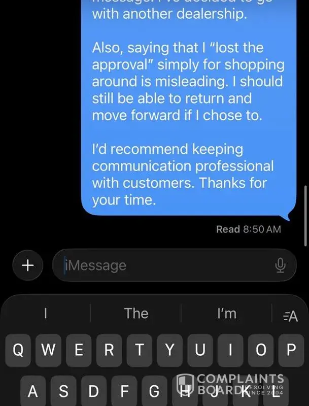 As a customer, I believe it's entirely reasonable to shop around, especially for a major purchase like a vehicle. And given the interest rate of 12% I was quoted from him and Julia, I needed to explore some other options. Experiences like this can significantly impact a customer's perception of a dealership which I am sure you would agree.