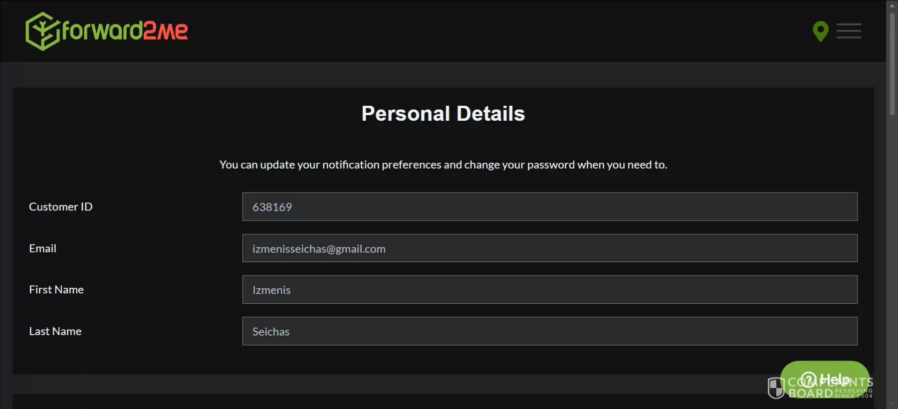 I have contacted forward2me multiple times requesting to update my personal information (Customer ID: 638169). My current name is listed as Izmenis Seichas, but I need it changed to Volodymyr Oliinykov. Despite repeated requests, no action has been taken. Additionally, my package has been missing for over a week, and I have received no response from...