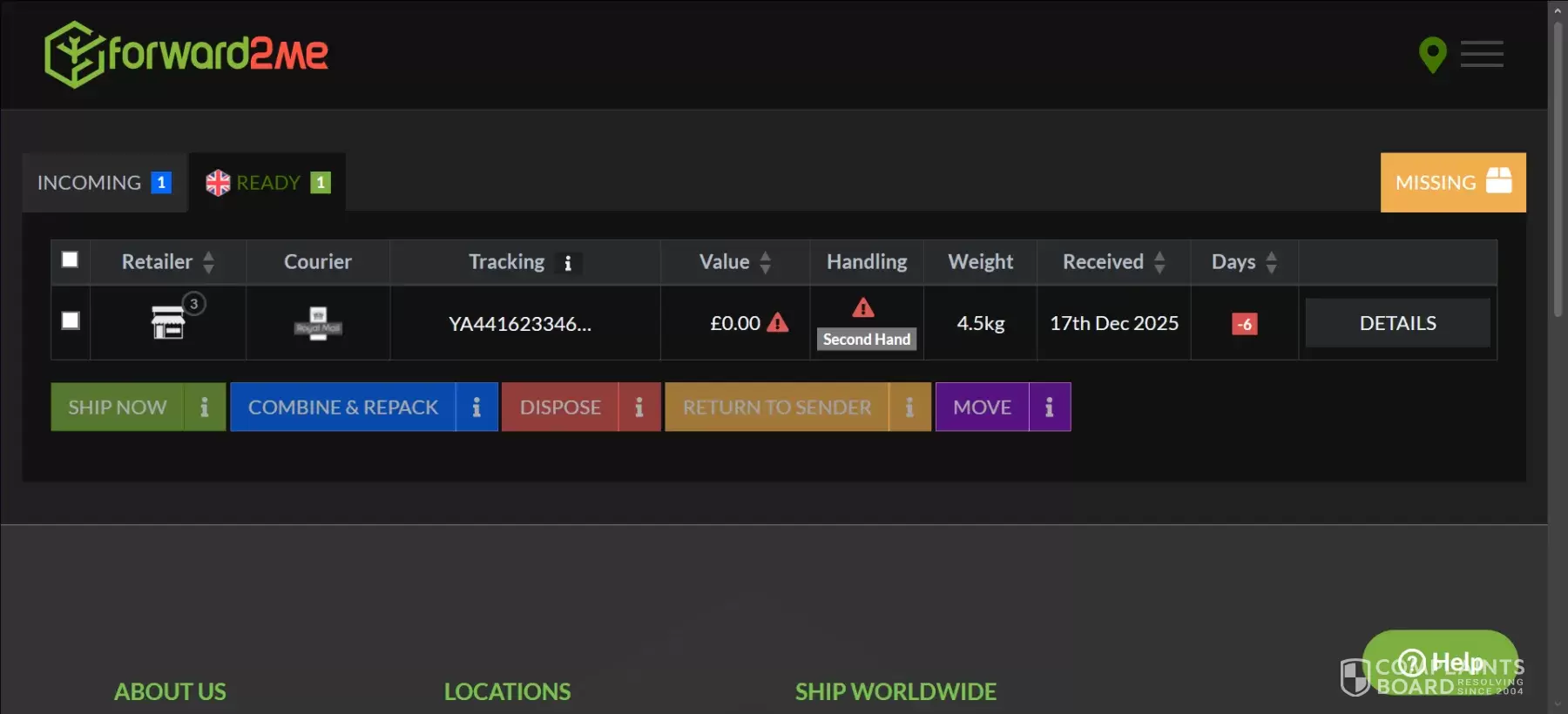 Forward2Me’s earns a 1.0-star rating from 1 reviews and 6 complaints, showing that the majority of international shoppers are dissatisfied with package forwarding service.