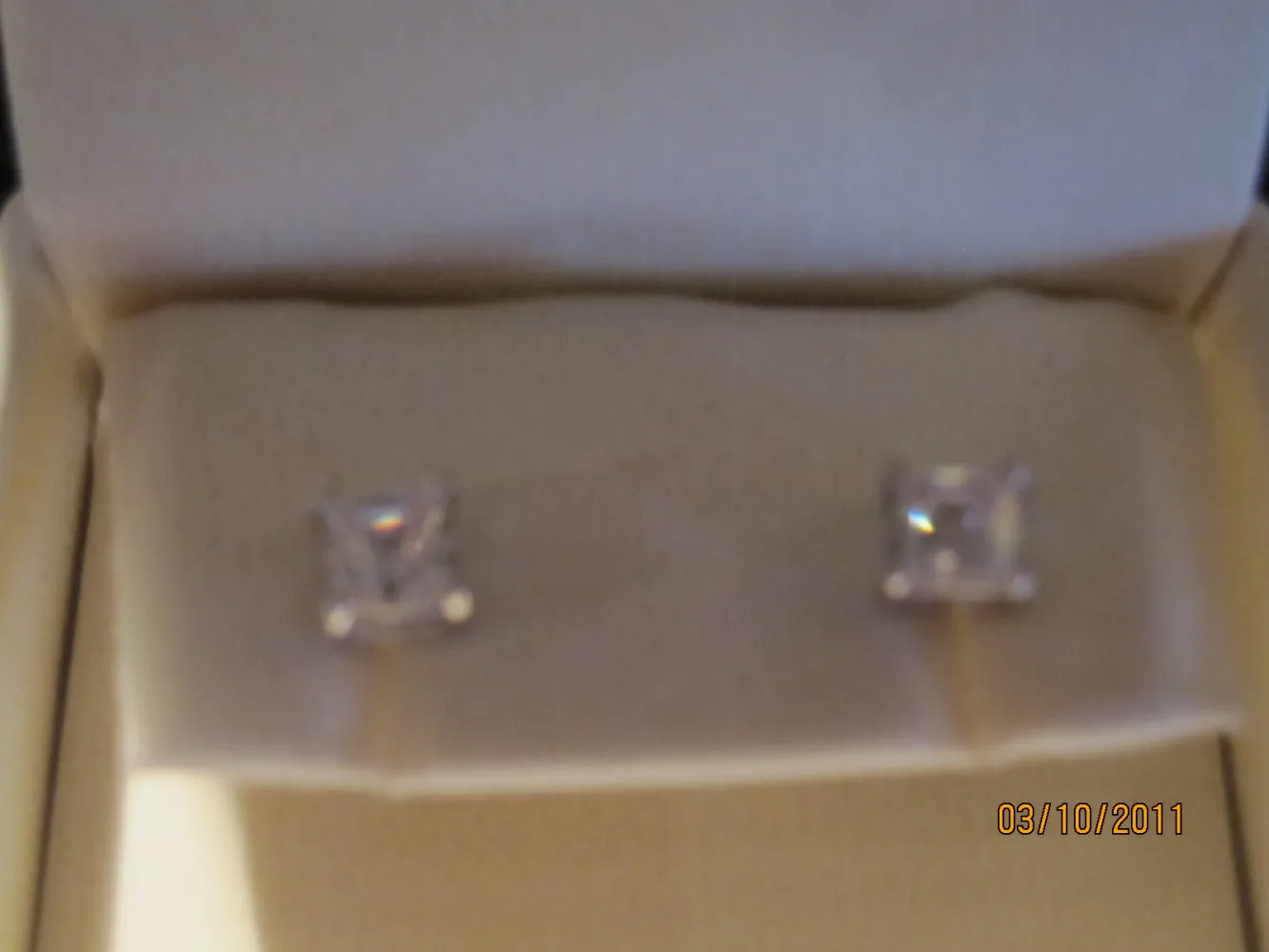 In November of 2010, in good faith I purchased at the Meridian, ID store, a pair of 14k white gold 1ctw Princess cut diamond earrings, which I kept in the original box they came in, then as a proactive security measure to protect my valuables, I stored them in my personal safe, until when for personal reasons I changed my mind about keeping them.