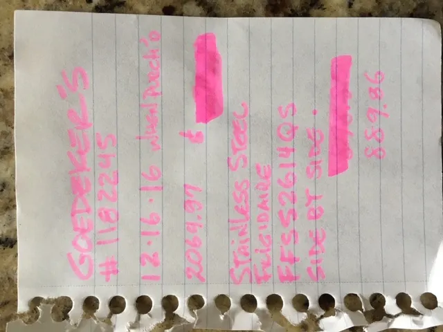 In mid, to the end of 2016 my son moved his family of five, to from Southern California to Morrilton, Arkansas. I bought them a brand new Stainless Steel side by side refrigerator FFS2614QS, on 12-16 -2016 at Geodeker's for $889.86.