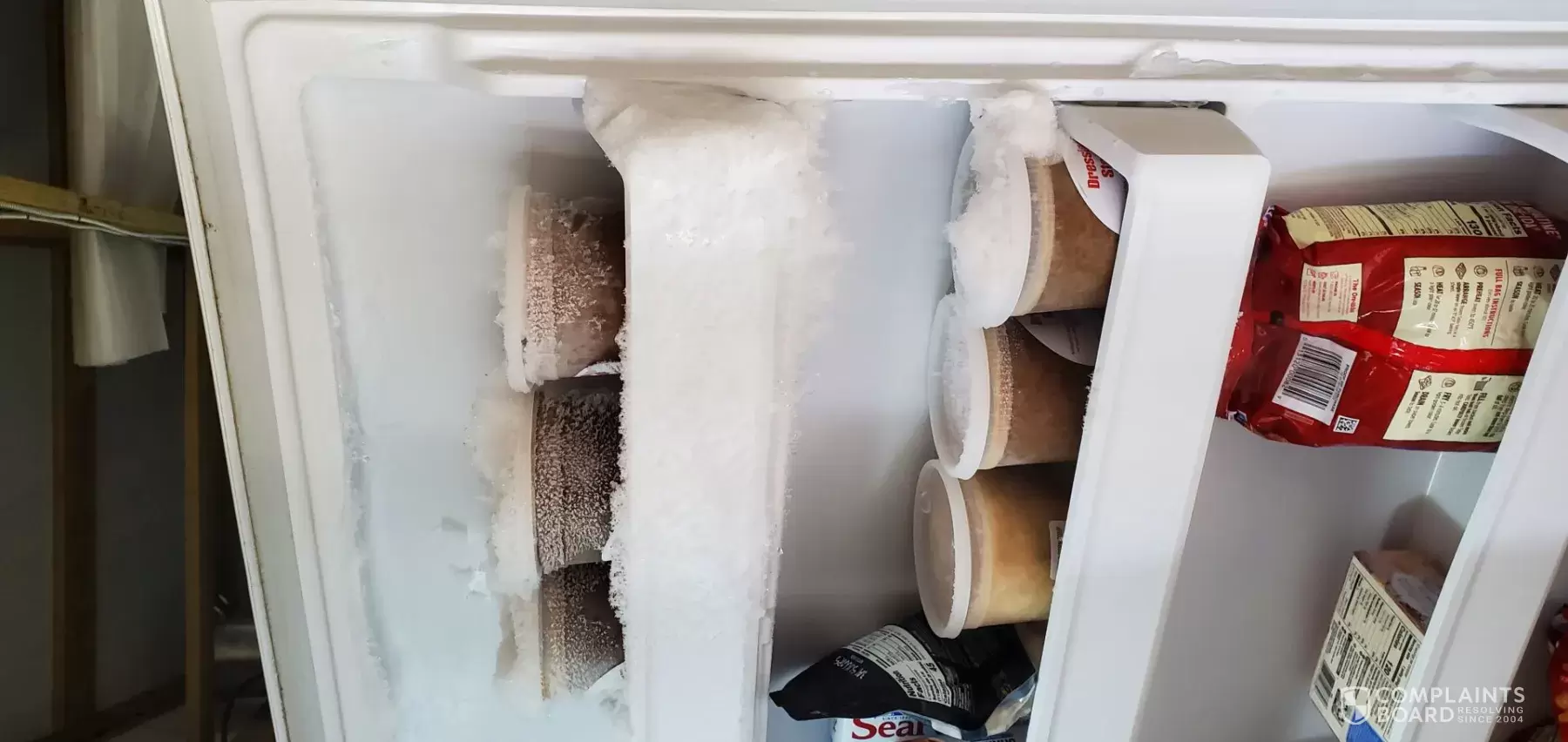 Purchased Nov 2020 with extended warranty. Delivered Jan 2021. From day 1 had ice build up at bottom of door. Found bottom of door bent up. Would not warranty. Over $200.00 out of pocket to replace. Sill would not seal. Replaced door seal twice at $160.00 each. Would not warranty. Found both side walls bowed out 1 inch. Door reset numerous times. Still does not seal. Circuit board stuck in defrost mode (lost everything) $80.00 to replace. Would not warranty. Ice build up inside bottom, found drain tray bent to inside of freezer draining to inside of freezer to this day door will not seal
