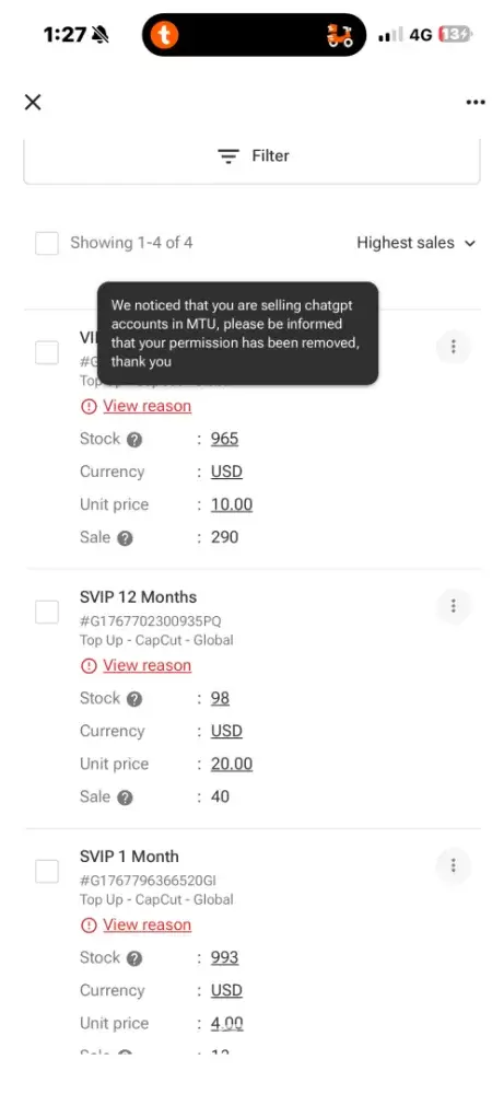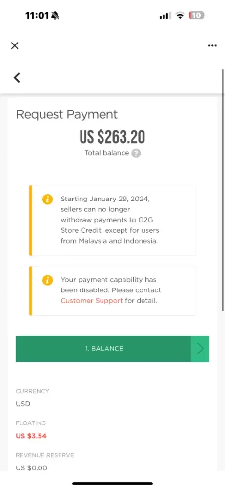 I sell capcut pro and my all customers their confirm orders and give me a good review but g2g have another opinion, I try to withdraw under 30$ and g2g sent it ok but when I try to withdraw 198 they told me your payment capability has been disabled. Please contact customer support for detail.