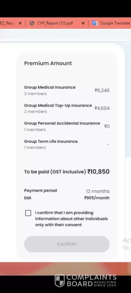 Dear Team, I recently chose a health insurance plan for myself and my wife with a yearly premium of ₹6,246. However, I noticed that an extra top-up plan was automatically added to my policy with a premium of ₹4,604 (Screenshot attached for reference). I would like to request removal of this top-up plan from my account promptly. Could you please guide me...