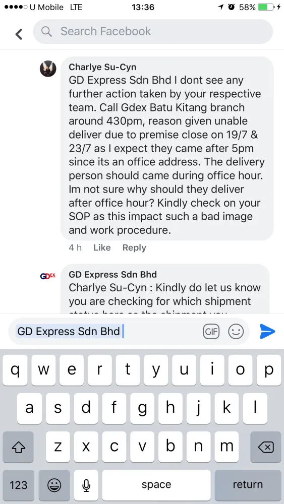 layanan buruk staff gdex sg koyan terhadap sender