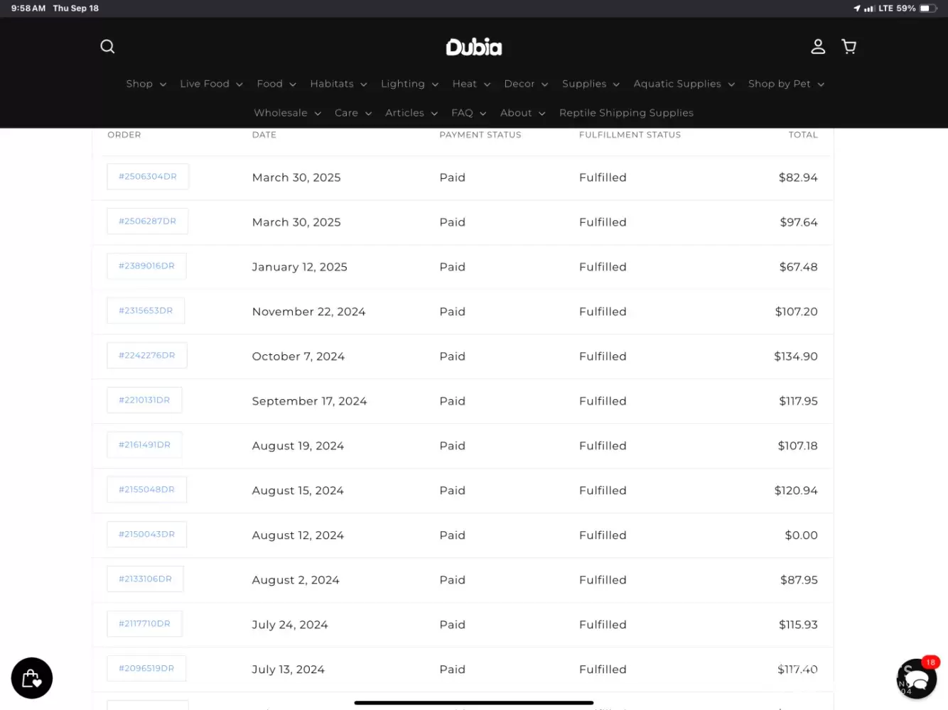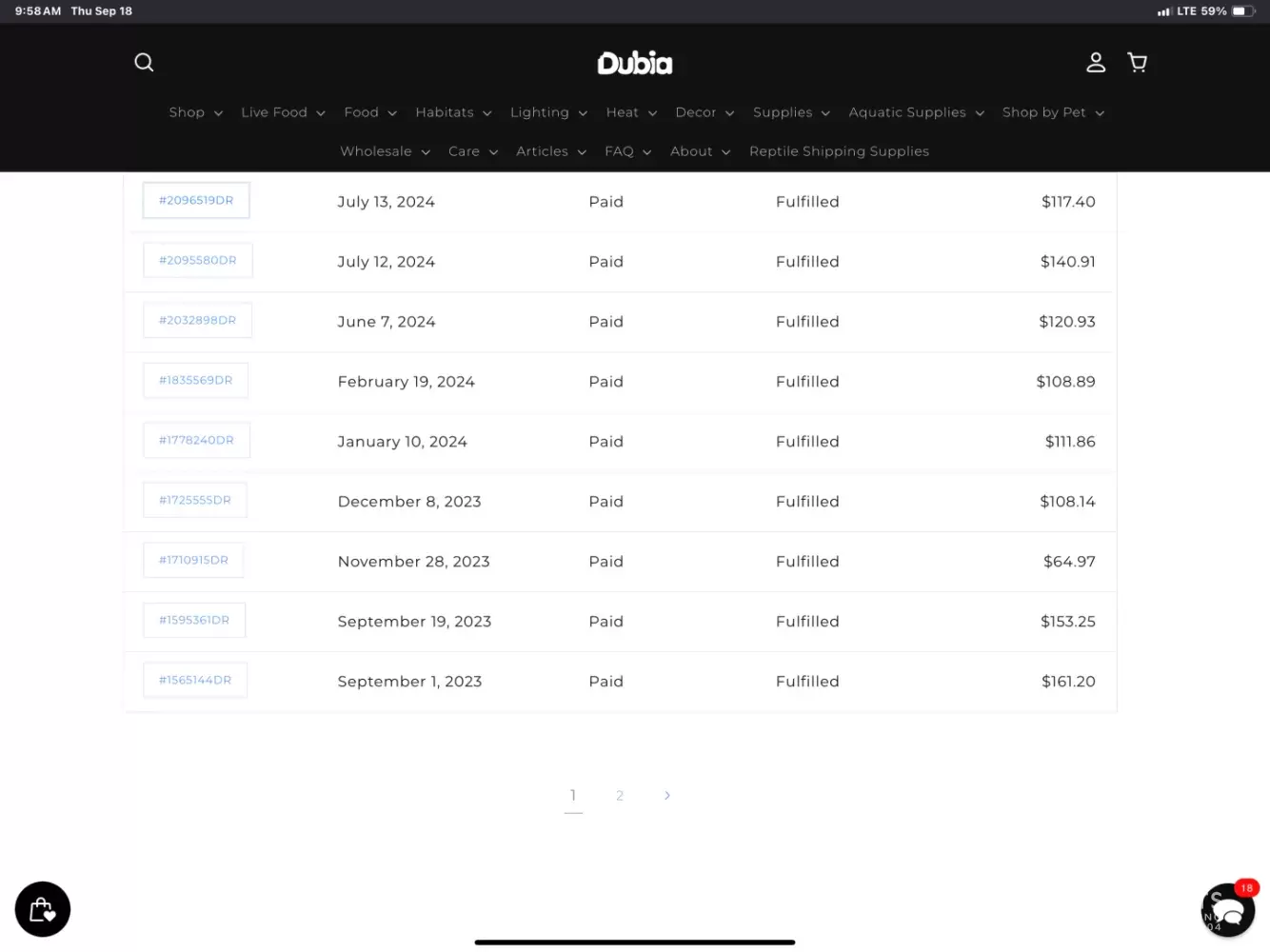 Customer service has blocked my emails and chat for unknown reasons since I requested wholesale pricing for my morph market store. Dubia owns morph market. I sent them what they asked for to qualify my store and that is when they blocked me. They did insist i send them documents my state does not require. Sent them page from my taxes showing my business.