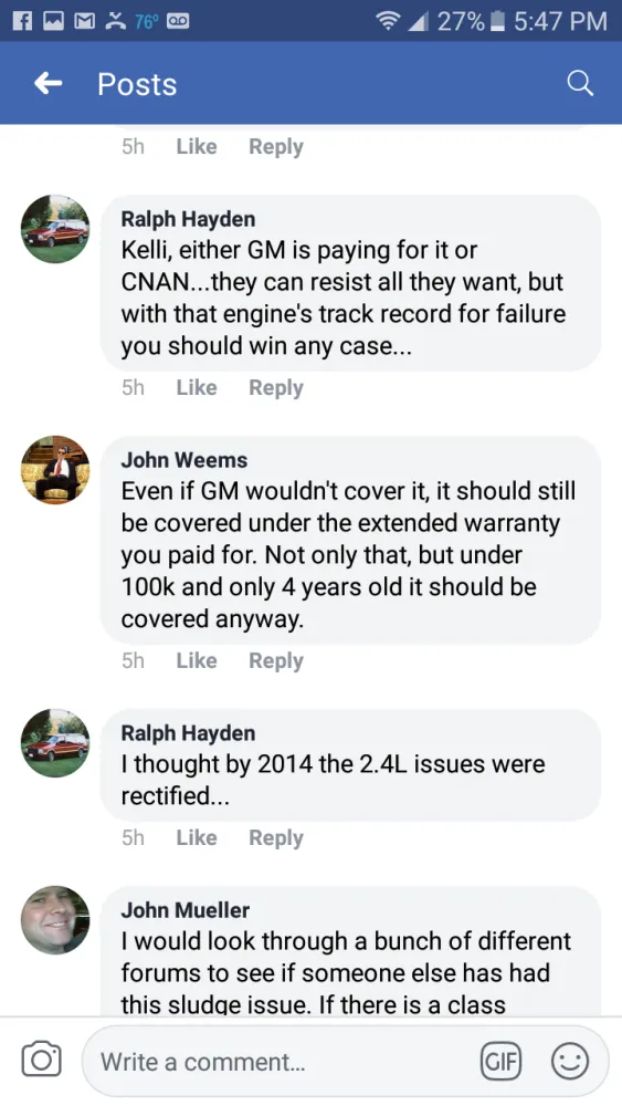 it got towed to a local dealer for repairs, and again as soon as I went online I was able to find that too many people experienced same with their GM cars