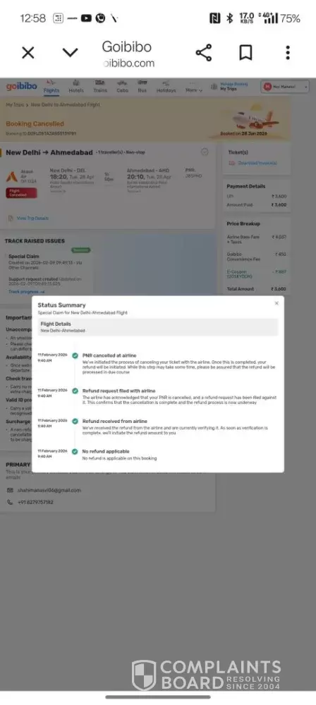 I raised a refund request earlier on Goibibo site. When I tracked the status, it is showing 'No refund is applicable on this booking' so I checked with akasaair airline and they confirmed that amount is refunded and sent to the agency.