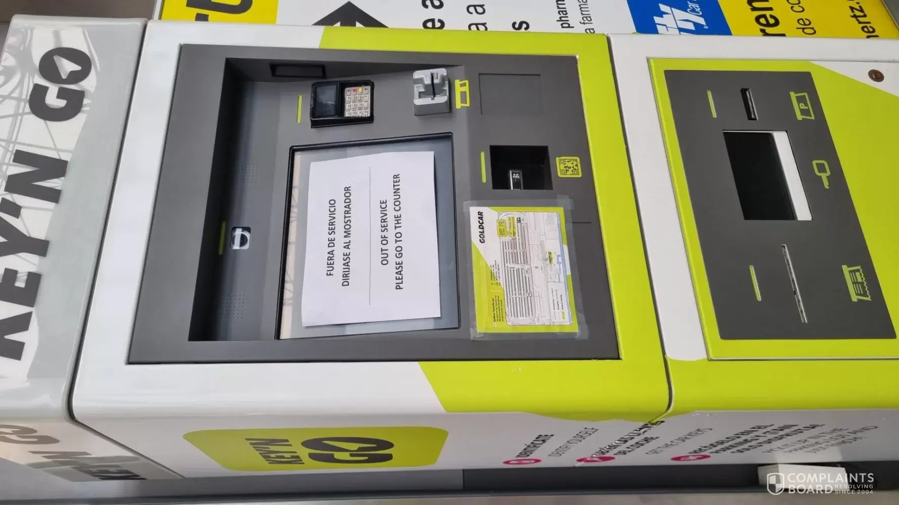 My father and I both rented a car and chose the Key and Go option. Unfortunately, the machine downstairs wasn’t working and there was a very long queue. We decided to go upstairs to try there instead. Because the trip from downstairs to upstairs took some time, we arrived at the machine at 23:02 — just 2 minutes “late.” We went inside, where there wa...