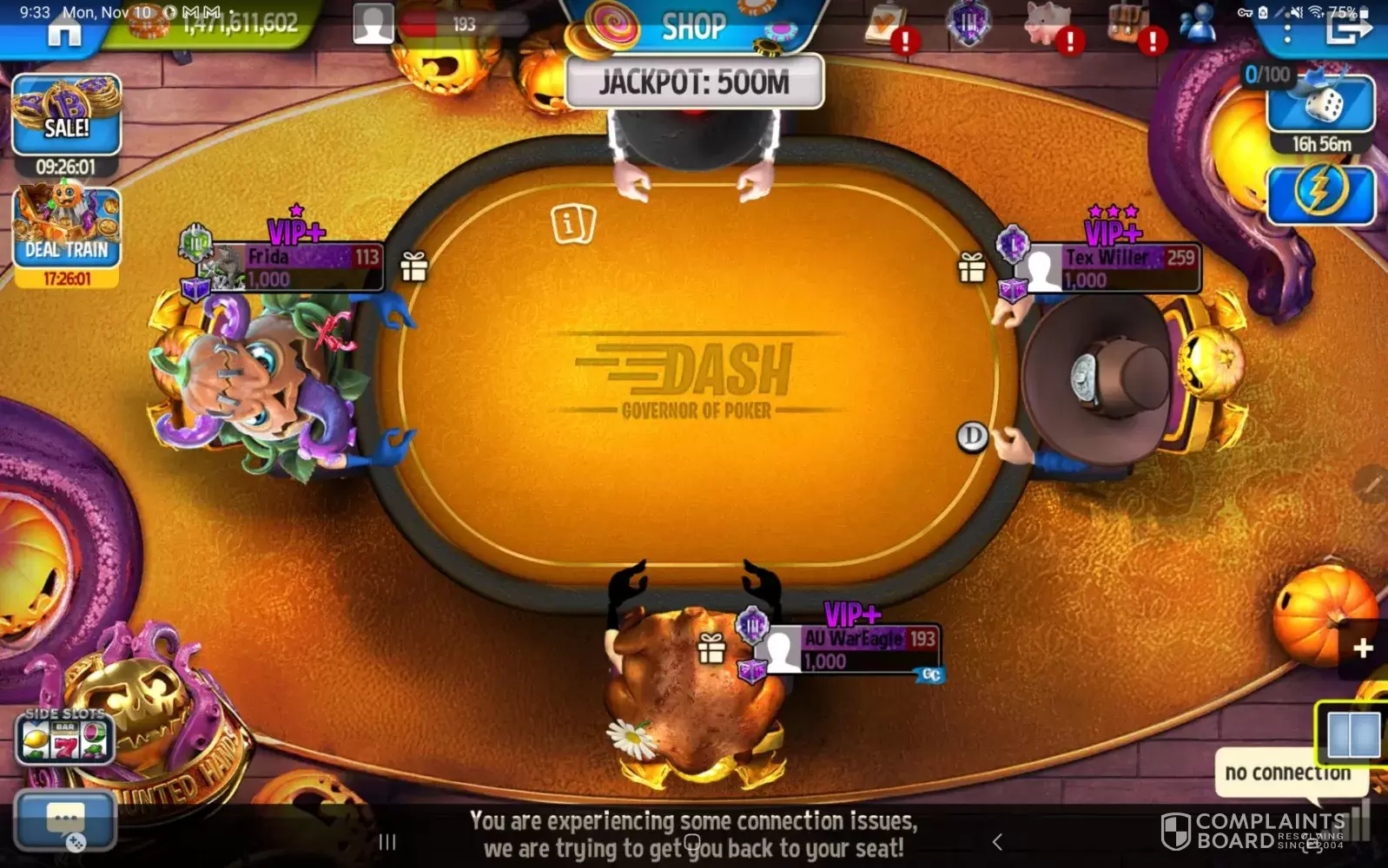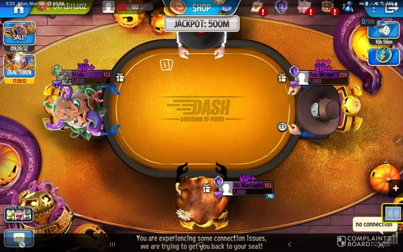 Like many other people according to the reviews. A lot of connection problems. Put some $ into infrastructure. Yea answer to everything is WE USE THE BEST RNG yea, yea, yea. Never admit guilt. 2/28 game is stuck on activity, all challenges met 5/16 was awarded two SUPER SPINS but never received them thank you very much. 8/24 how do I report a player “lezwin” for asking players if they are a “JEW”? 12/25. You can continue to give me CRAPPY hands but still will not pay to play. Merry CHRISTMAS. 1/7/22. Just curious how much money $ do I have to pay ( with your BEST RNG B. S.) to get a hand that I can win with 1/21/22 if u don’t pay to play and get up there ranking that is when you use your old “ experiencing connection problem” and you start losing. Cute. Best RNG B.S. RNG = ROTTEN & NO GOOD