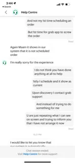 I have scheduled an order for a 6-6.15pm delivery time at 3.13pm and confirming it before I press order payment. Upon confirmation the delivery is changed to Now (3.45pm-4pm) and I straight away contacted Support at 3.15pm. Instead of helping, Support keep repeating that I have not scheduled an order. And they could not do anything, the driver allocated till the driver delivering. The ordeal ended at 3.45pm with no help at all from Grab end.