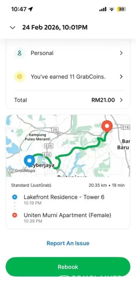 During the booking, I clearly specified the pickup location as Tower 6, Lakefront Residence, CP1 (Car Park 1). Please note that Lakefront Residence has two parking areas, CP1 and CP2. I was waiting at the exact location stated in the booking, which was CP1 at Tower 6.