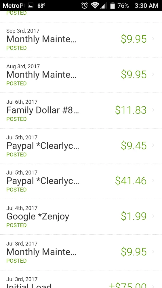 On sept.11, 2017 ii received a deposit from a class action lawsuit.Greeendot took it upon themselves to deduct my monthly fee which I had no idea there was one.From my settlement deposit.Are they even allowed todo that with settlement deposits? So I then called customer service to asked what was going on.The representative promised to put the money back and revise monthly fee.which would leave me with $10 on my card.I never got the money put back I am still now $9.95 negative.wtf