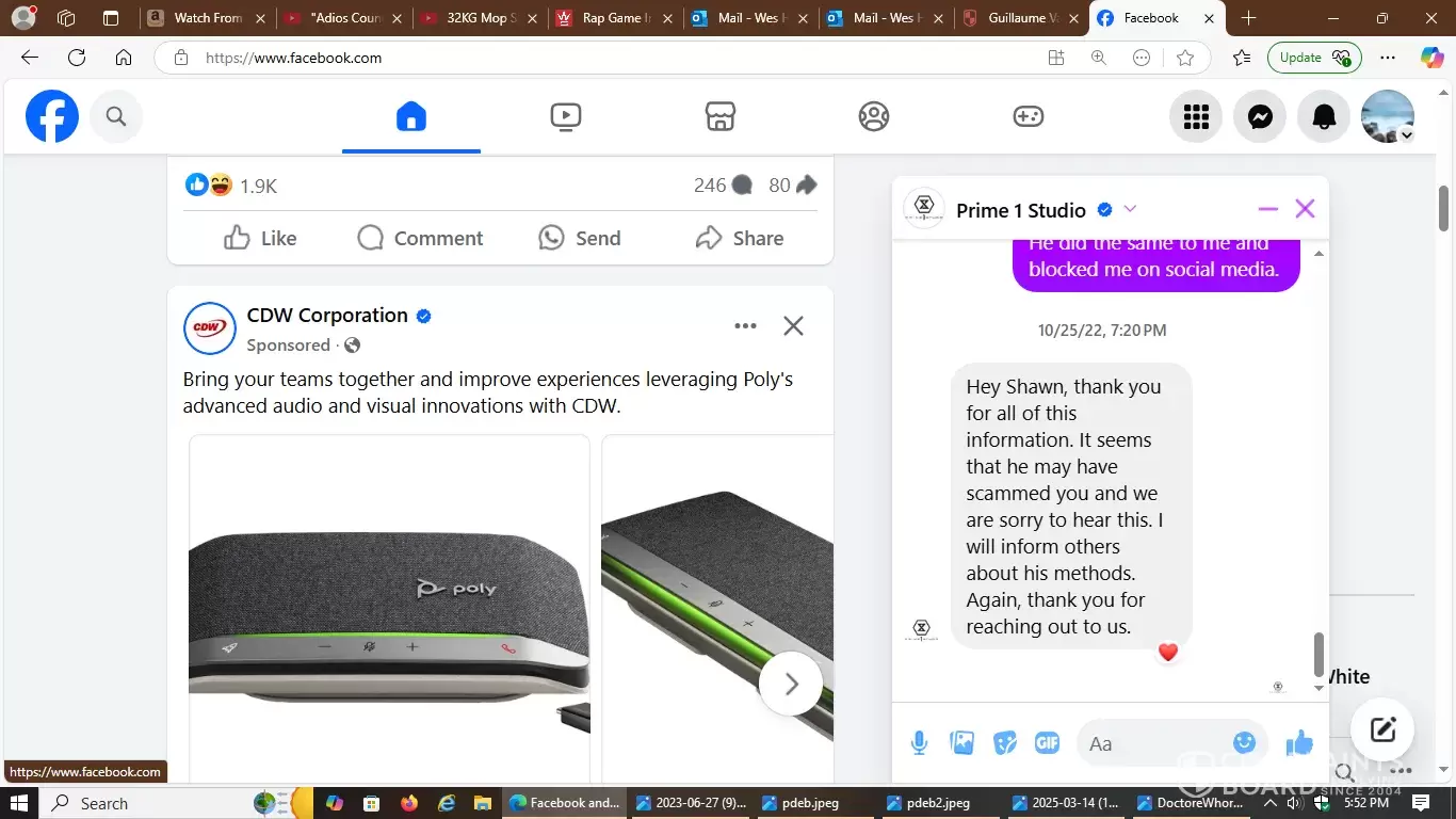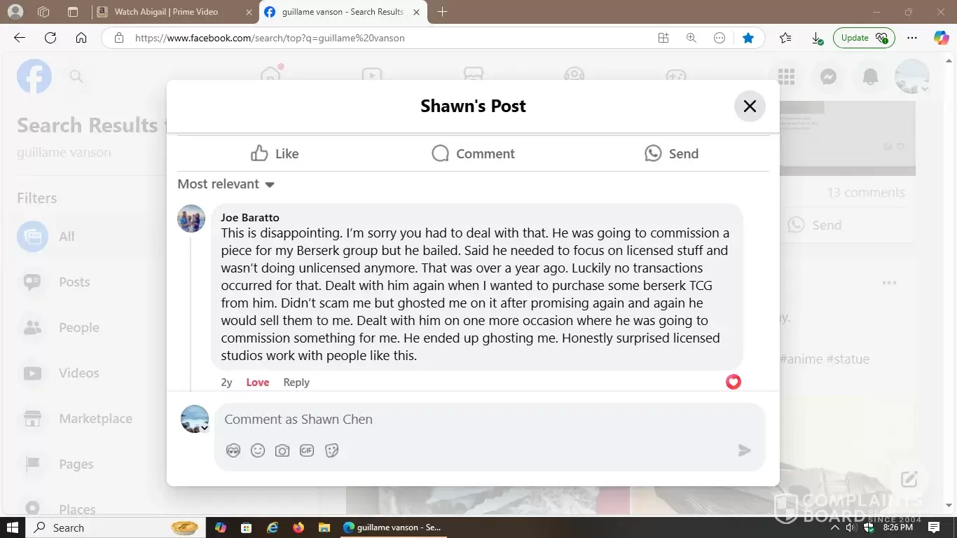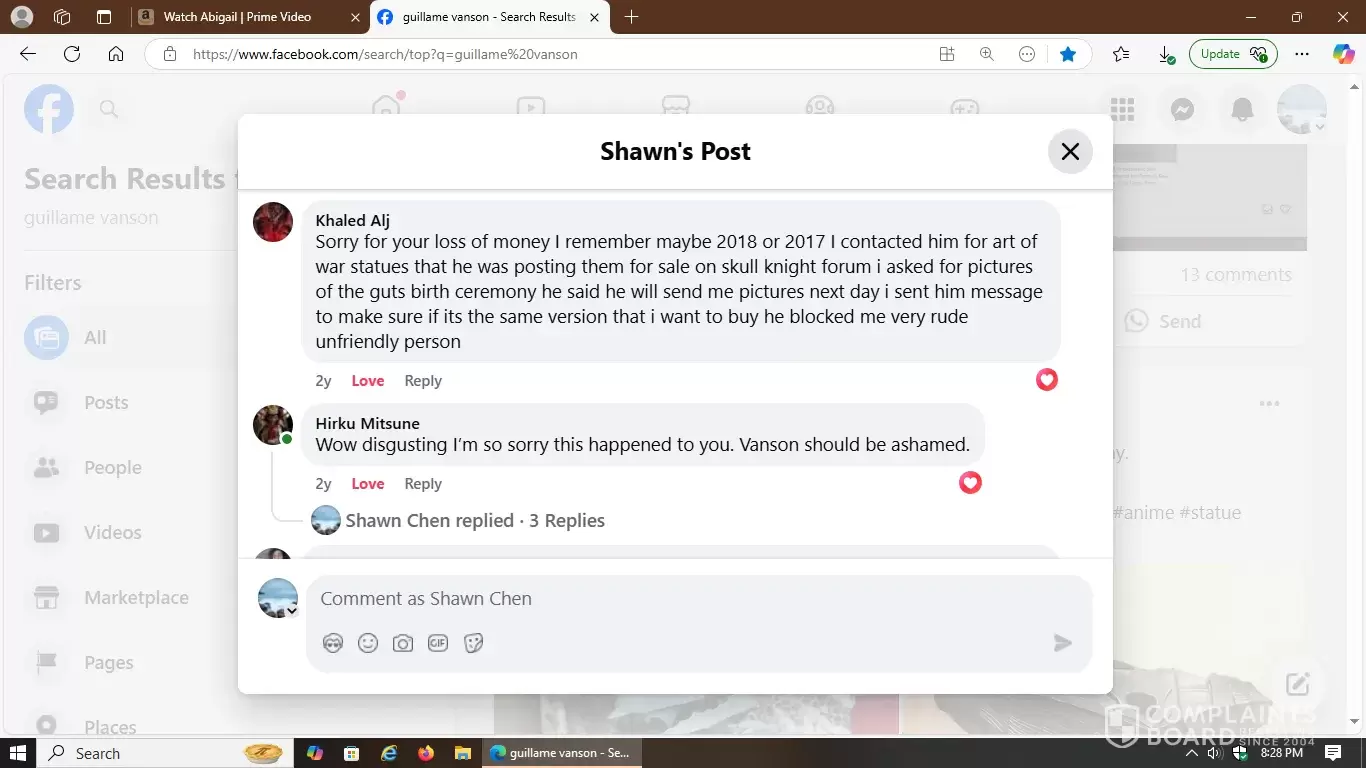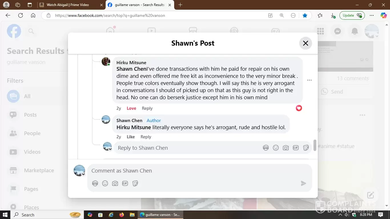 That's the initial link on Facebook with included screenshots of how deceptive, hostile and manipulative this 3D artist is in the world of statue commissions. Carefully observe the multiple responses I received from other victims he scammed prior to my incident. They fully detailed how they were all mistreated and proves a hostile pattern of abuse.
