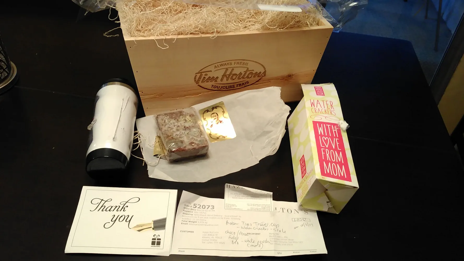 I received a basket from a client Order #52073 the fudge was rotten the crackers stale and the Tim's travel cup broken when I contacted customer Service 2 months ago December 4, 2017 I was told I would be issued a $25 credit i thought great and ordered a non-food item - Oak cutting board - went back and forth waiting for a tracking # it was before Christmas they're busy so I waited . . nothing . . emailed again . .provided tracking # for the original order shipped in November... I explained yet again. Finally I received an "Invoice" $25 + Tax $ back and forth they removed the tax . .then came almost $17 in shipping fees . . this is crazy would someone please just stick the board in box and mail it - Canada Post - - it's been 2 months I don't need express shipping @ $16.93.