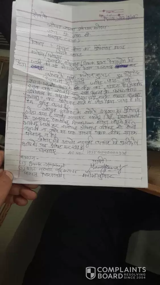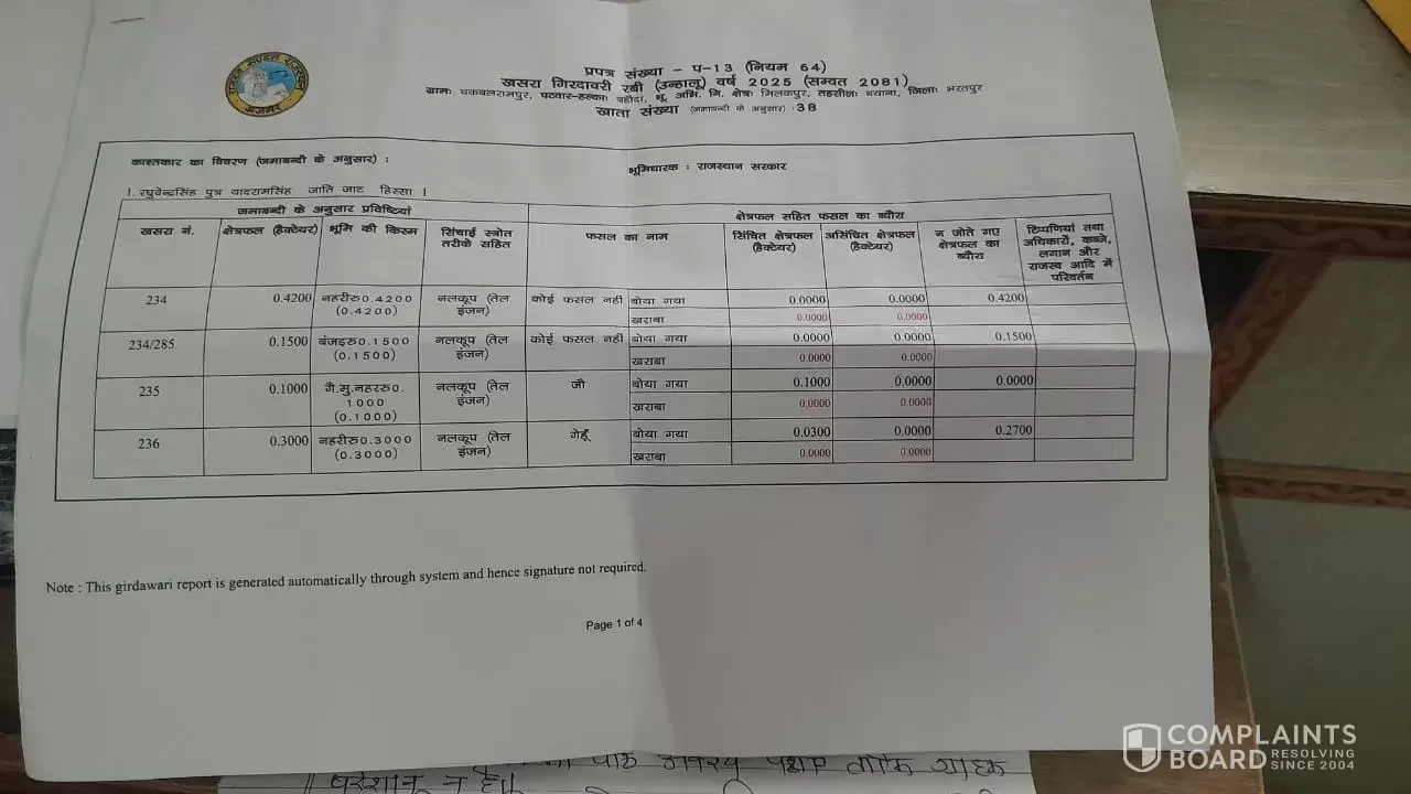 Applicant name manoj kumar ac no 1055804000376 bharatpur branch has complaind you that bank bharatpur branch added potato crop bima in my account ac no 1055804000376 instead of wheat and musterd. I did not cultivate potato in my farms. (record also included)