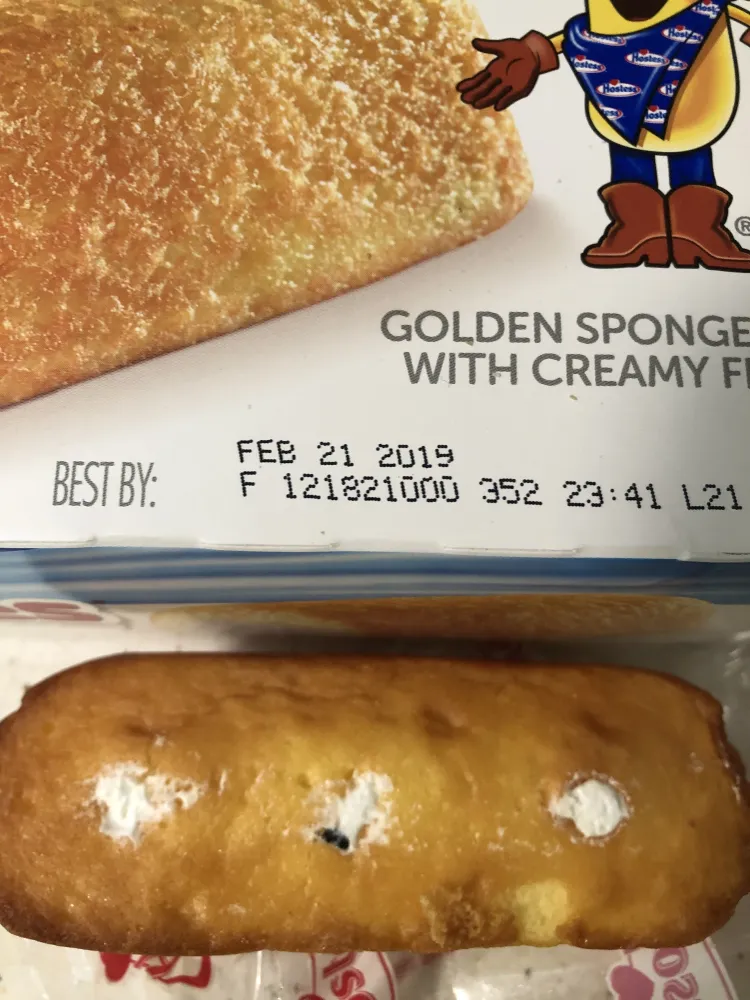 It's a good thing that my husband looks at his food before eating it because there is something black on the bottom of the Twinkie he opened to eat this morning. He isn't the type of person who wants something for nothing, he just wants make others aware of things that have happened and be treated/compensated fairly. I will attach 2 pictures to this email of the Twinkie with identifying markers from the box in which it came from, if any further information is needed please let me know. Thank you