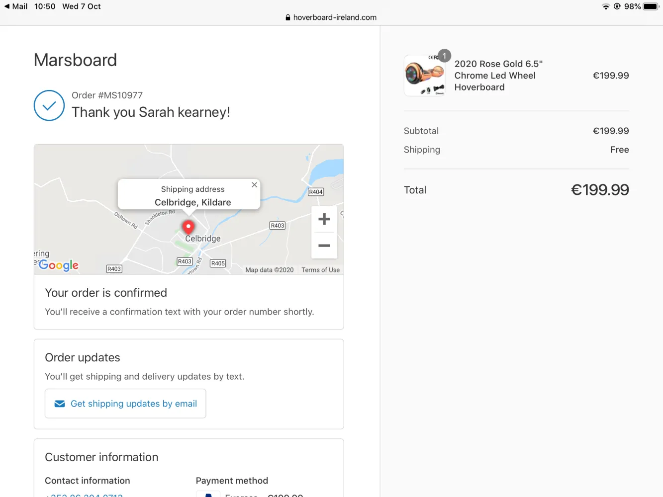 I purchased a hover board for Christmas for my daughter from Hoverboard- Ireland. It was broken when it came out of the box. The wheel cover ( black strip) that covers the electrics was broken and wouldn't sit properly hence it can't be used. It also has a mark on the side, scratch in the chrome straight out of the box. This is supposed to be a brand new item! It's been back in the box ever since and nobody is replying to my messages to return it. I have been messaging the page since Christmas Eve when we noticed the damage. It's so frustrating and I have a very upset eight year old, which is understandable as I have no Christmas present for her. Would really appreciate if someone would contact me [protected].